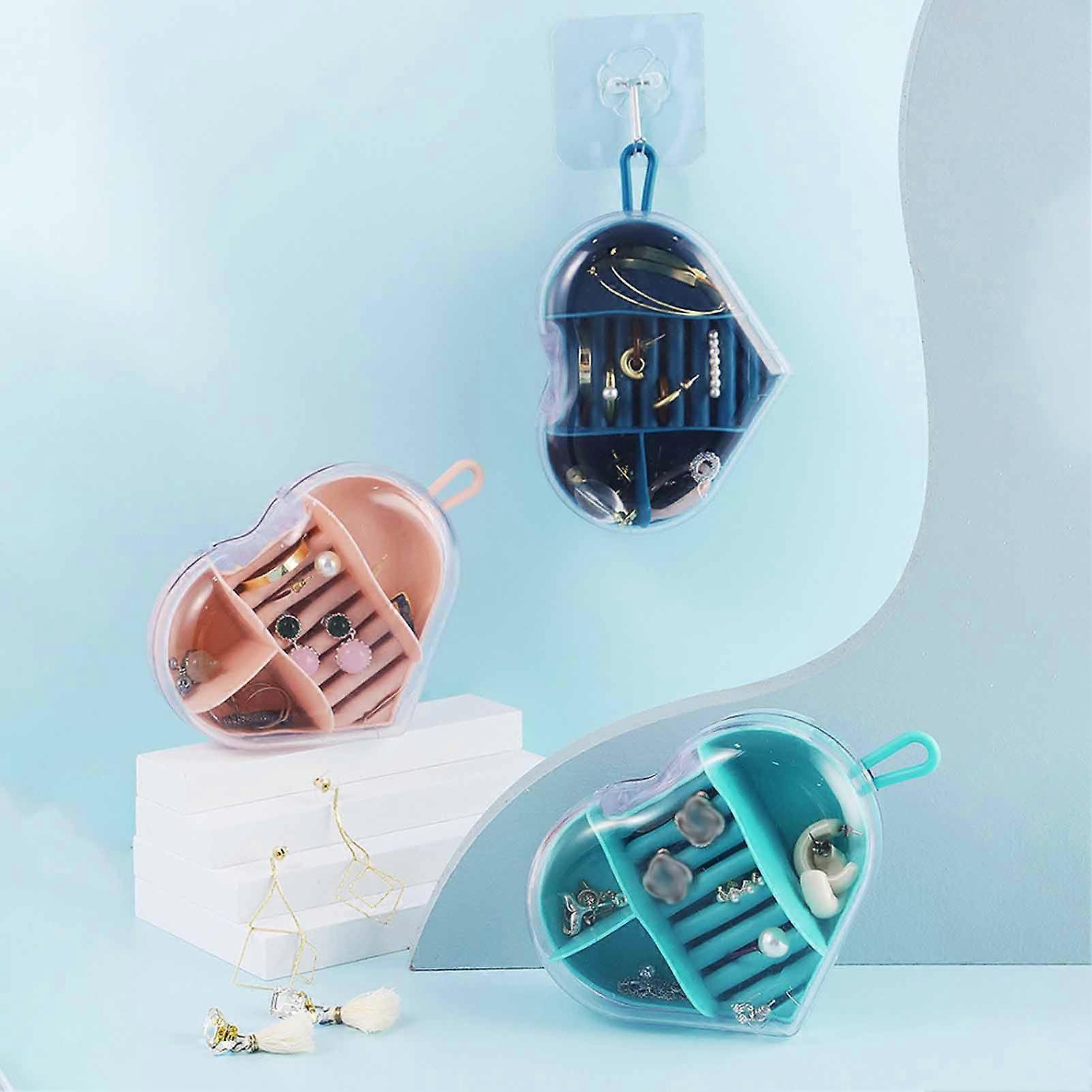 SUSUchens Travel Jewelry Box Compact Transparent Heart-shaped Easy Access Multi-grid Storage Case for Earrings Rings Light Blue
