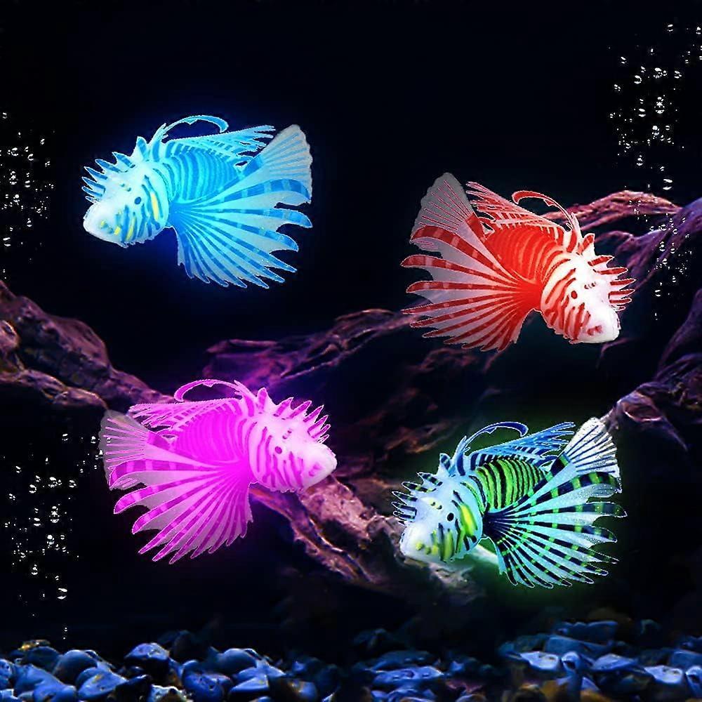 4 Pcs Glowing Lionfish Set, Multicolor Silicone Luminous Fake Moving Fish, Compatible with Aquarium, Tank, Office Decor