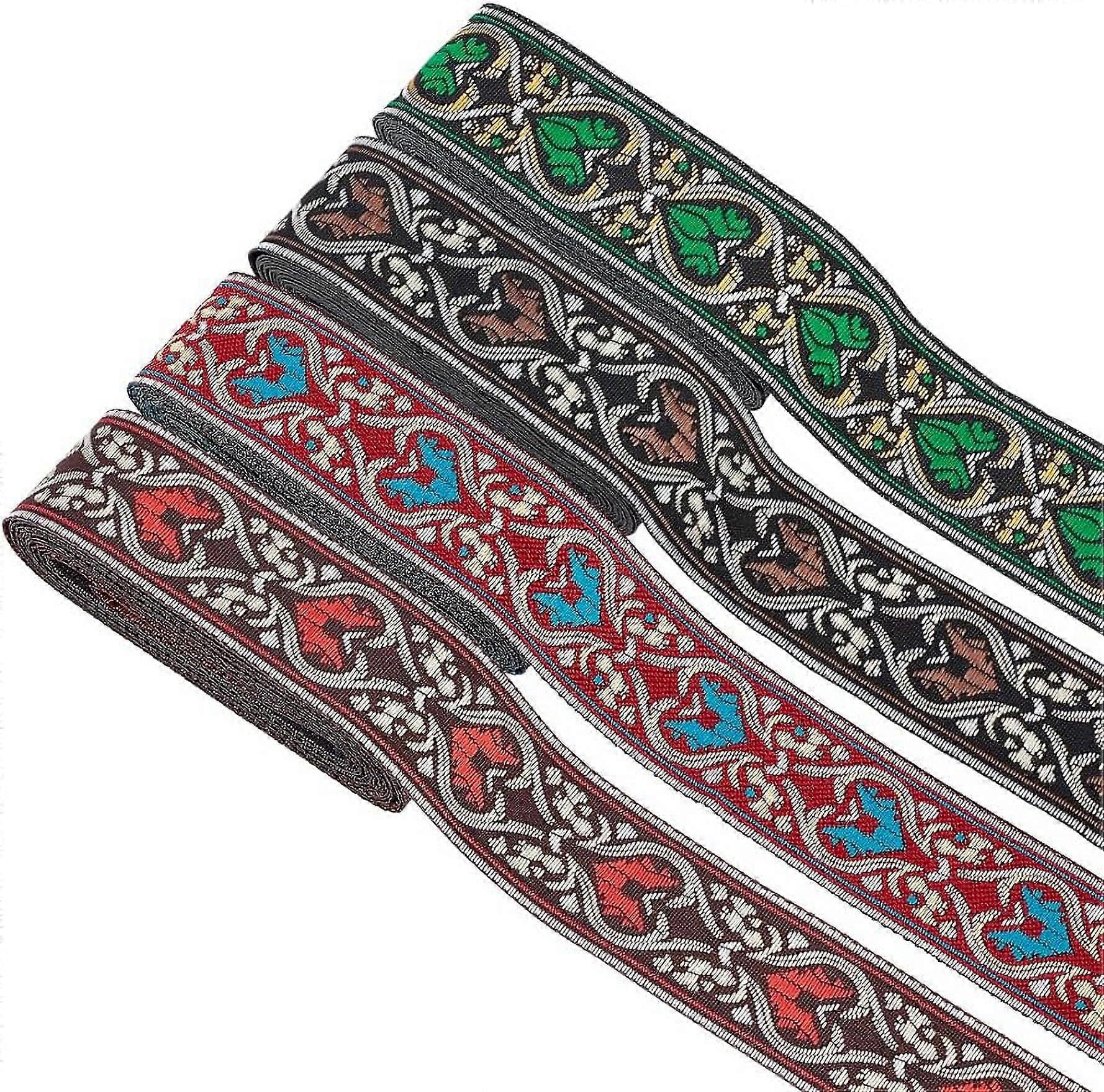 4Rolls Embroidery Jacquard Trim 15.3 Yard 33mm Green Coconut Brown Black FireBrick Vintage Jacquard Ribbon Trim Ethnic Style Heart Pattern Fabric