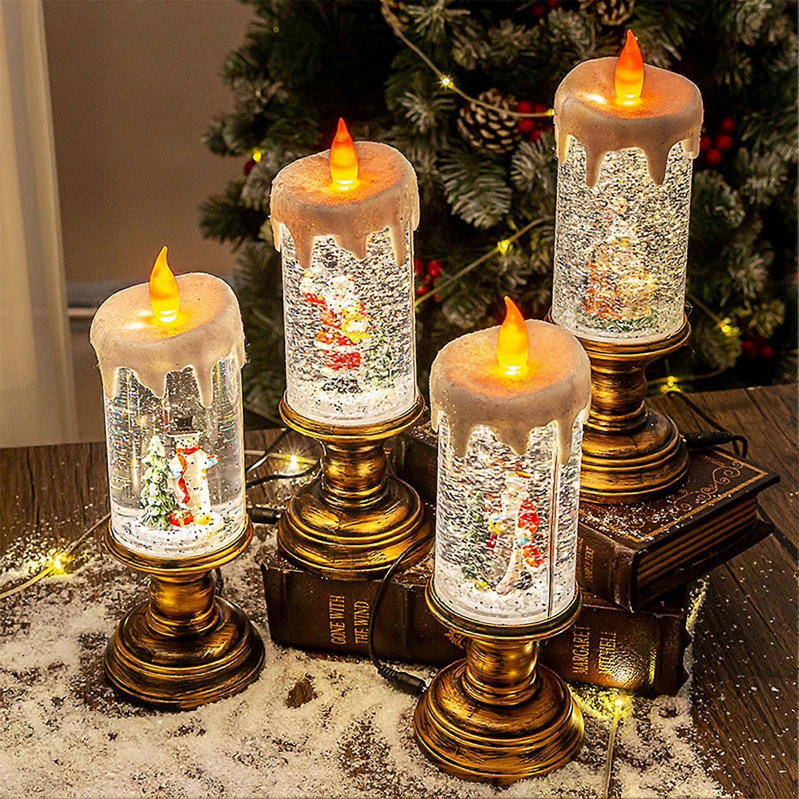 SUSUchens Christmas Flameless LED Candles, Santa & Snowman Flickering Light, Battery Operated Pillar Candles for Holiday Decor