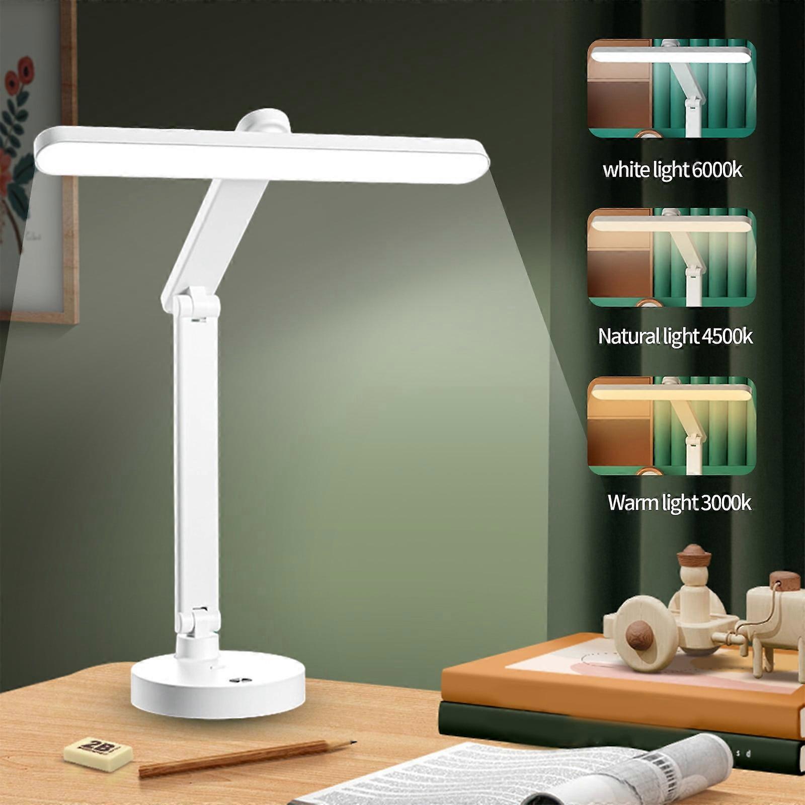 WJSXC New LED Desk Lamp, Foldable Plug-in with Phone & Pen Holder, 3 Color Temp, Dimmable, Compatible with USB Adapter