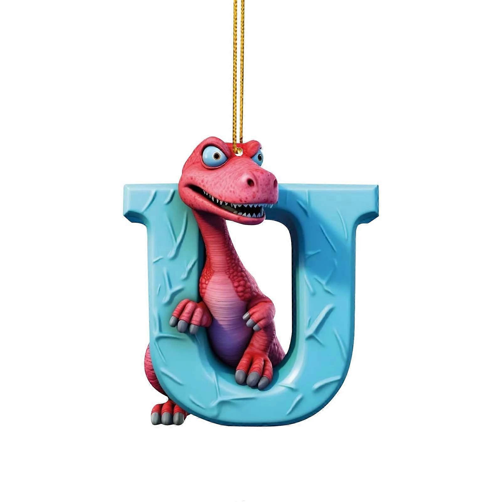 Christmas Dinosaur Ornaments - 26 Letter Cartoon Acrylic Pendant, Compatible with Christmas Tree Decor, Funny Kids Gift