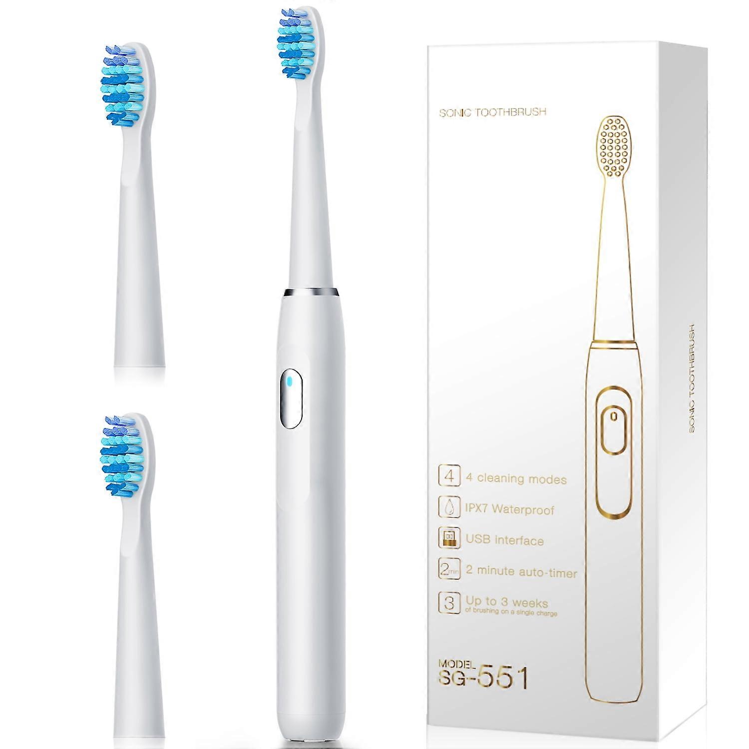 Rechargeable Sonic Electric Toothbrush for Adults, 3 Heads, 4 Modes, 21-Day Use, Compatible with USB Charging, Christmas Gift