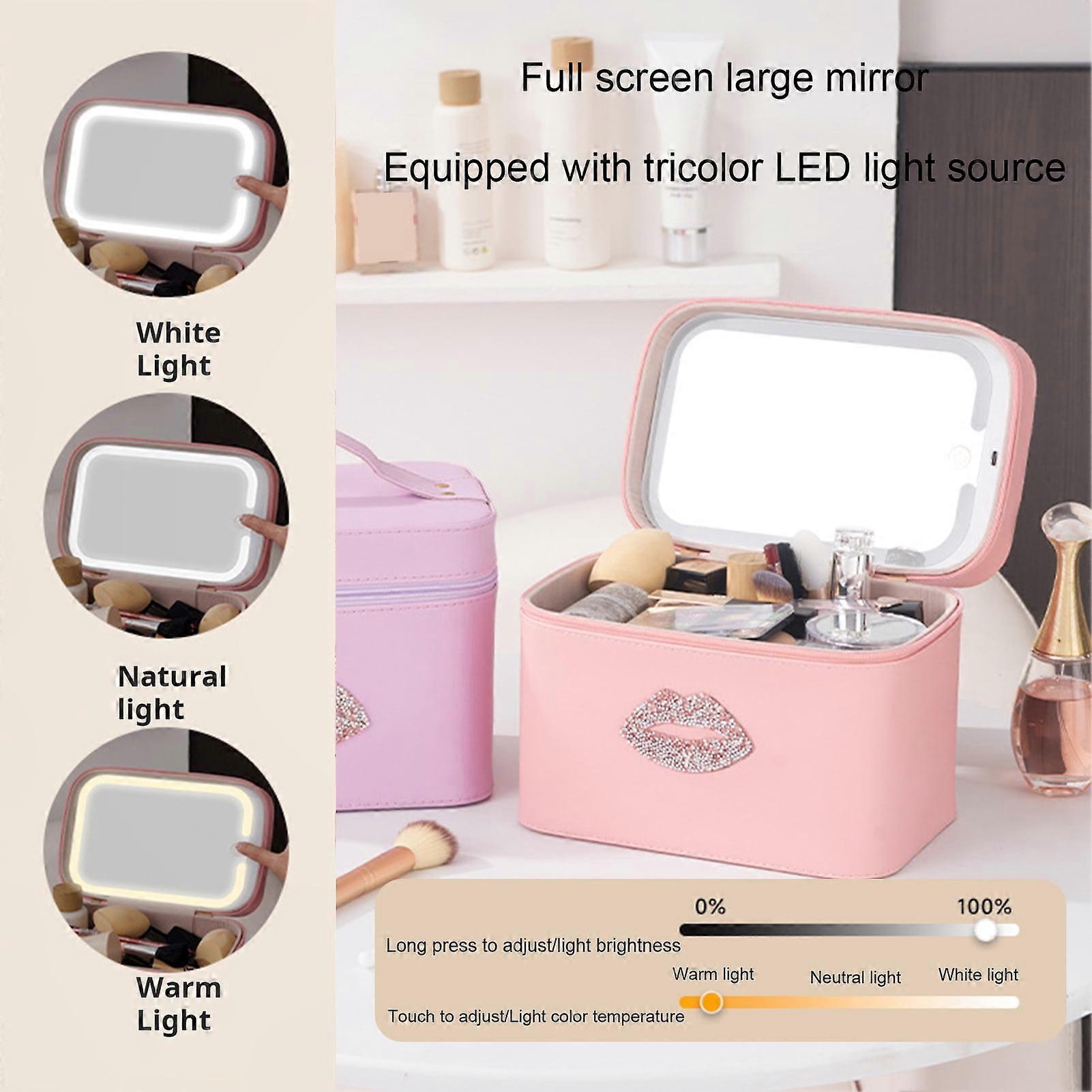 SUSUchens Travel Makeup Bag with LED Lighted Mirror Large Capacity Zipper Closure Handle Design Portable Cosmetic Makeup Organizer Bag Blue
