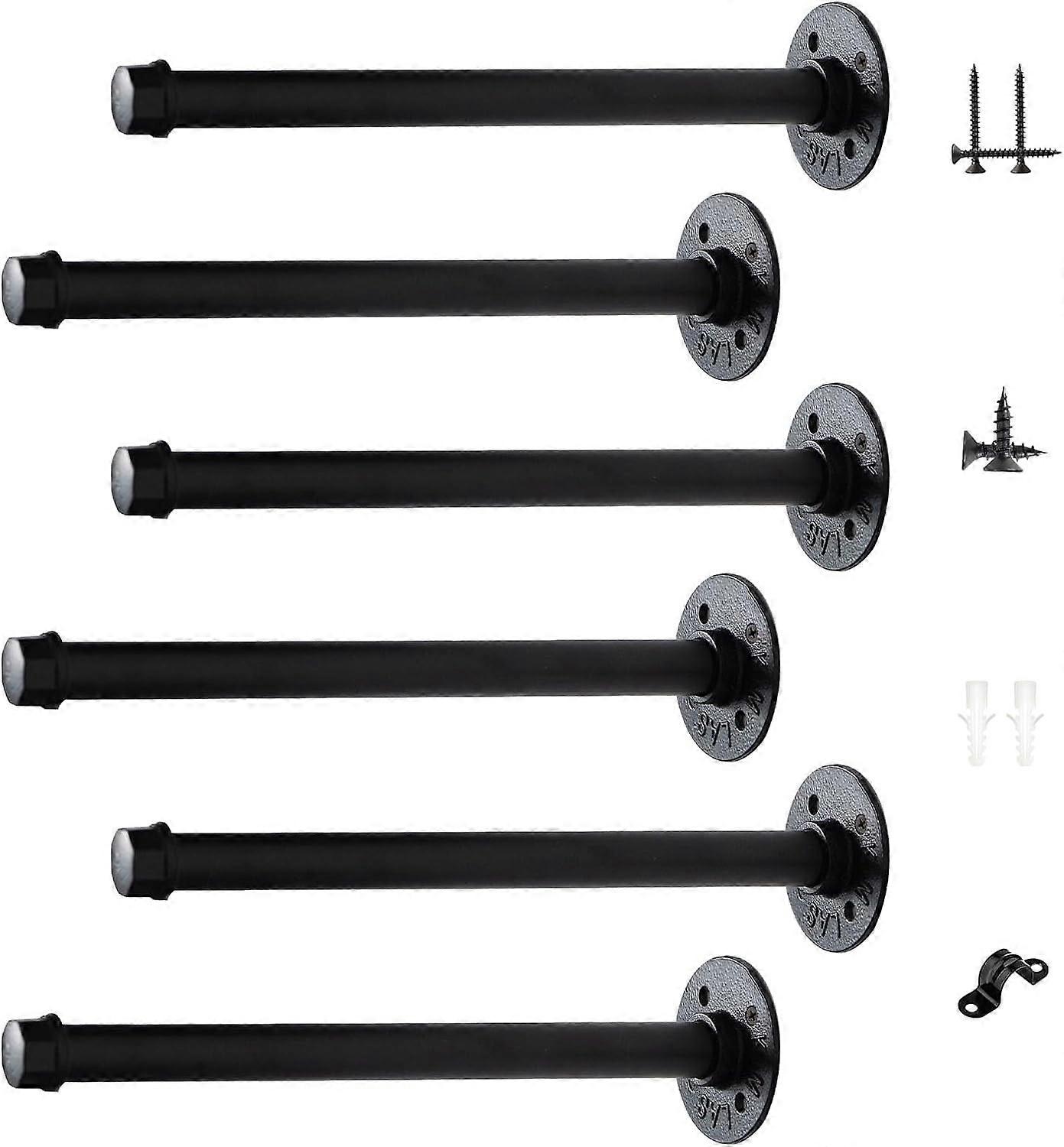 3/4" Industrial Pipe Shelf Brackets, Black Iron Rustic Wall-Mounted DIY Shelving Brackets for Wood Floating Shelves (6 Pack 10")