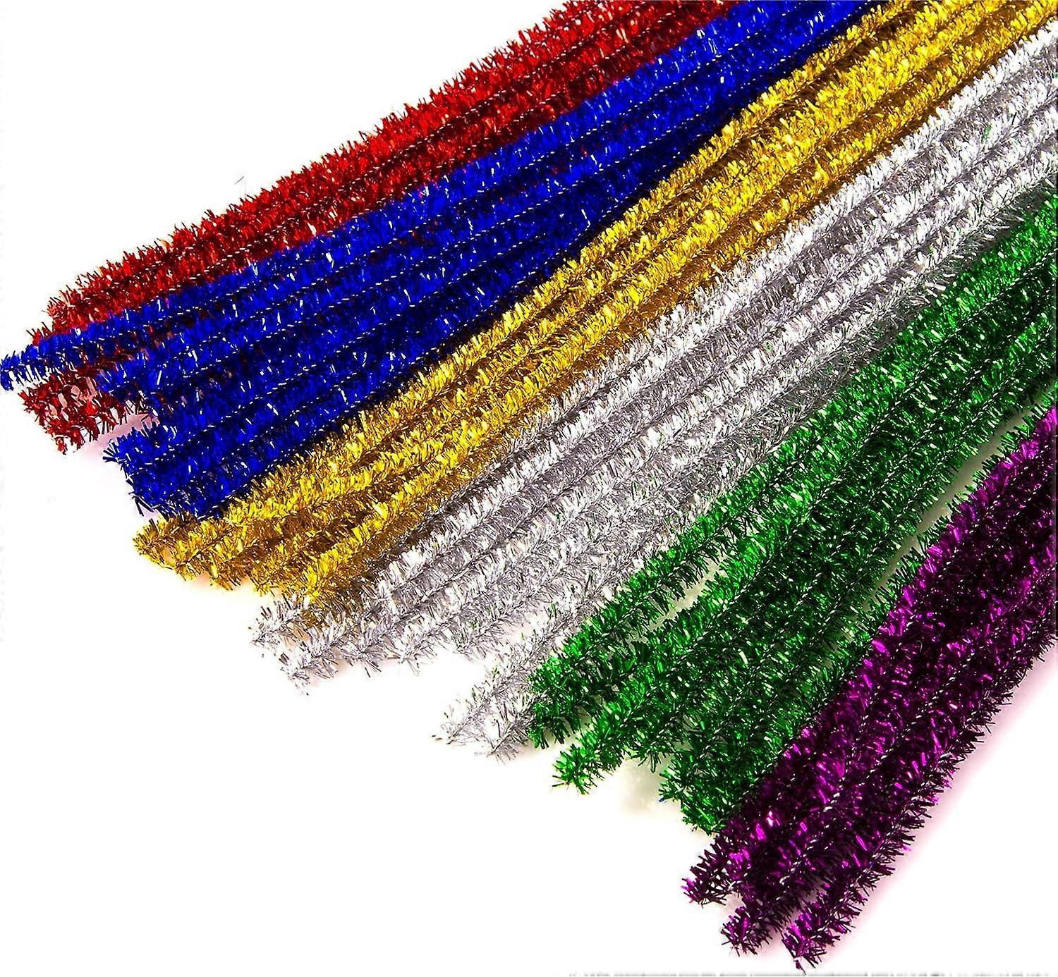50x Glitter Pipe Cleaners - Christmas Tinsel Arts & Crafts - 300mm x 6mm