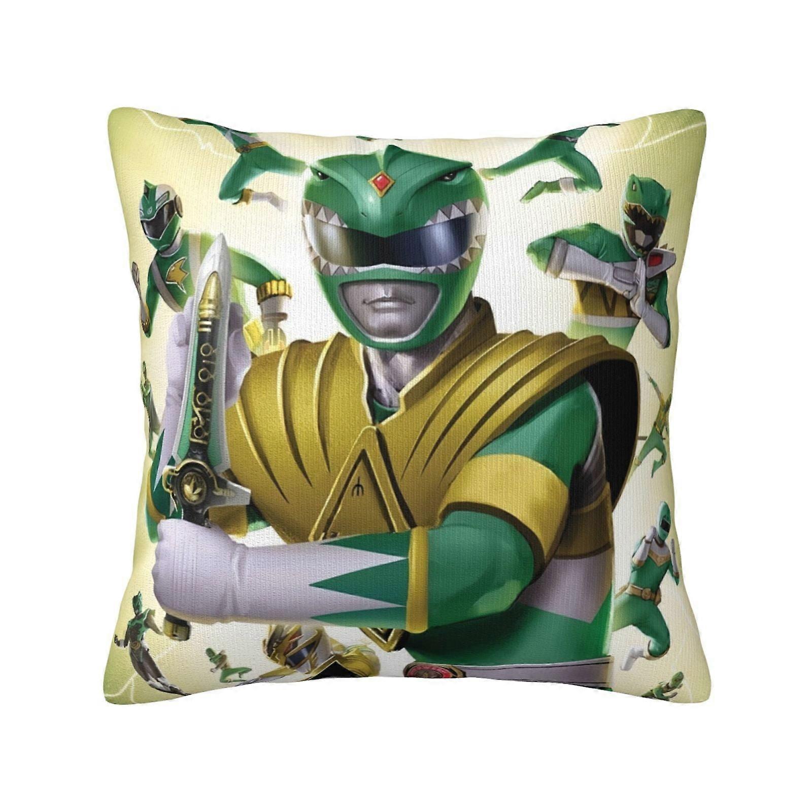 Power Rangers Plush Pillow Cases 18x18 inch, Square, Double-Sided, Soft Throw Covers for Bed, Sofa, Car, Bedroom Decor, White, No Insert