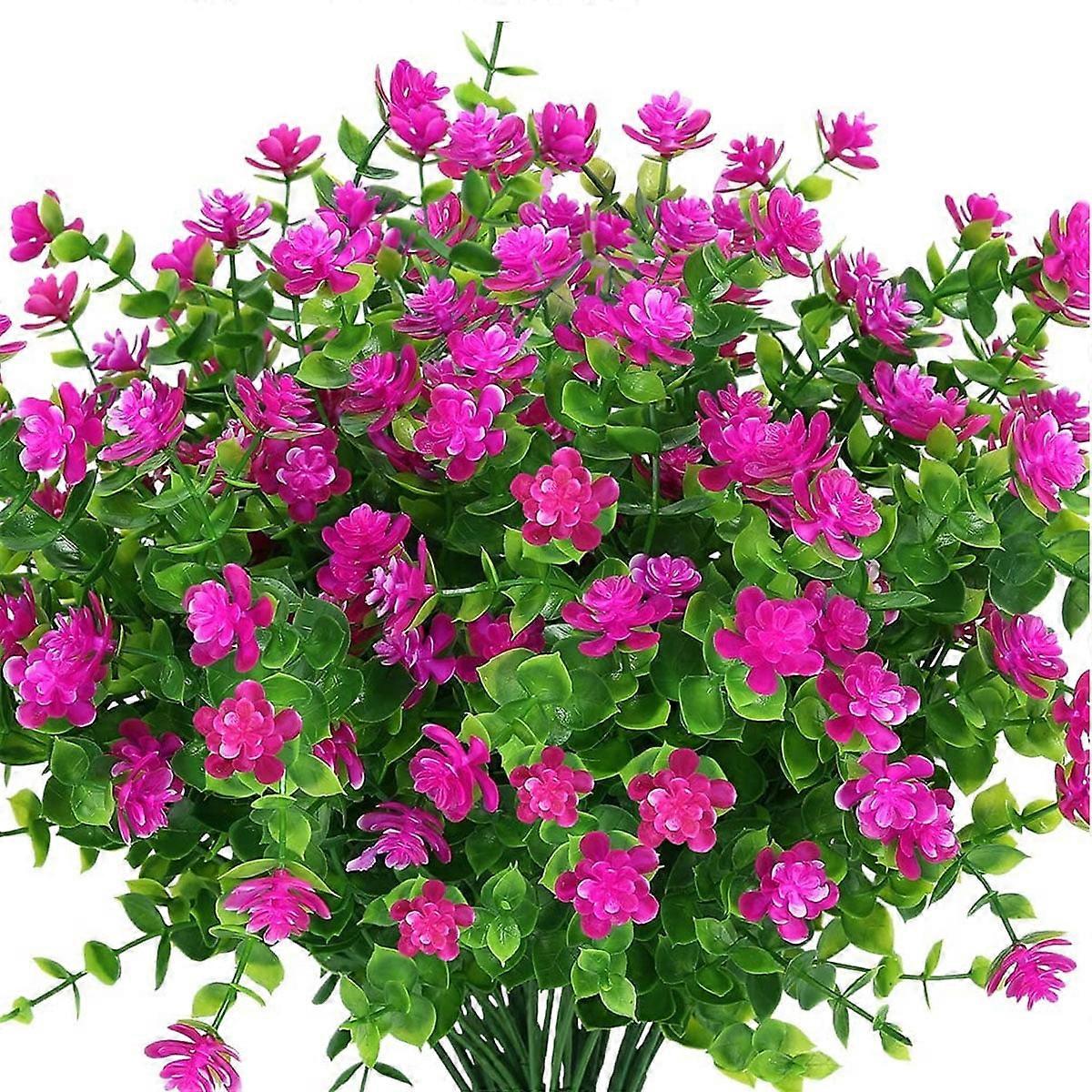 8 Pack UV-Resistant Artificial Boxwood Faux Plants, Compatible with Outdoor Garden, Patio, Wedding Decor - Fuchsia