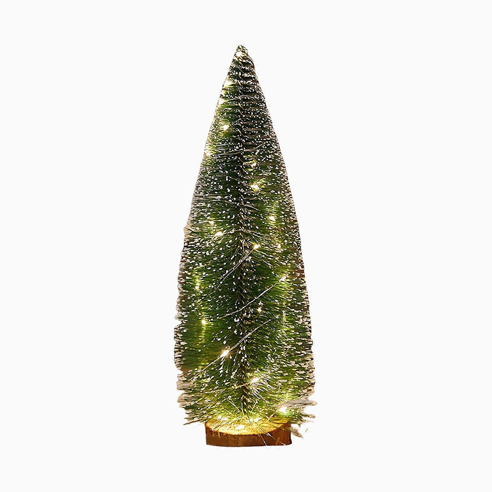 Small Christmas Tree Mini Pines Needle Tower Shaped Snow Pines Tree Desktop Illuminated Christmas Tree Ornament Christmas Decoration 6.1"