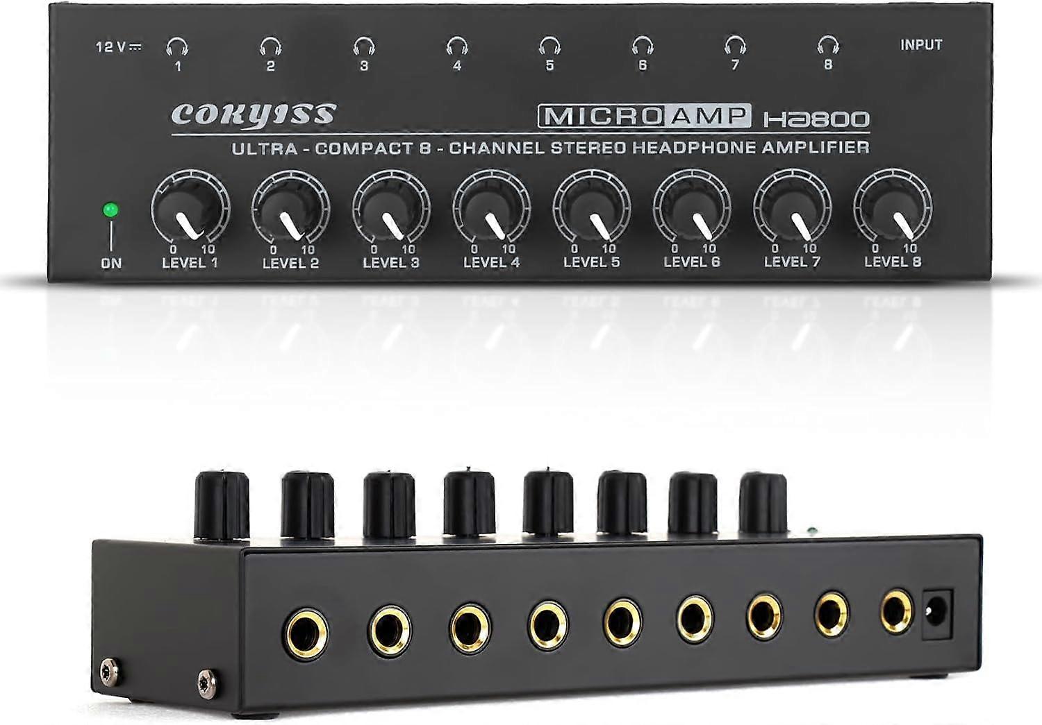 High-Fidelity 8-Channel Headphone Amplifier – Ultra-Compact Stereo Headphone Amp with Built-in Equalizer & 8 Output