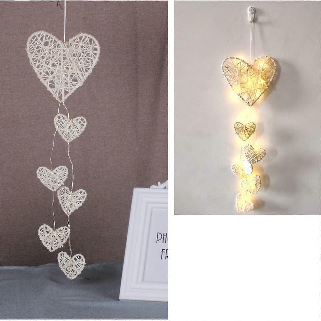 Up to 60% Off Wooden Rattan Heart-shaped Wind Chime Room Hanging Night Light Decor