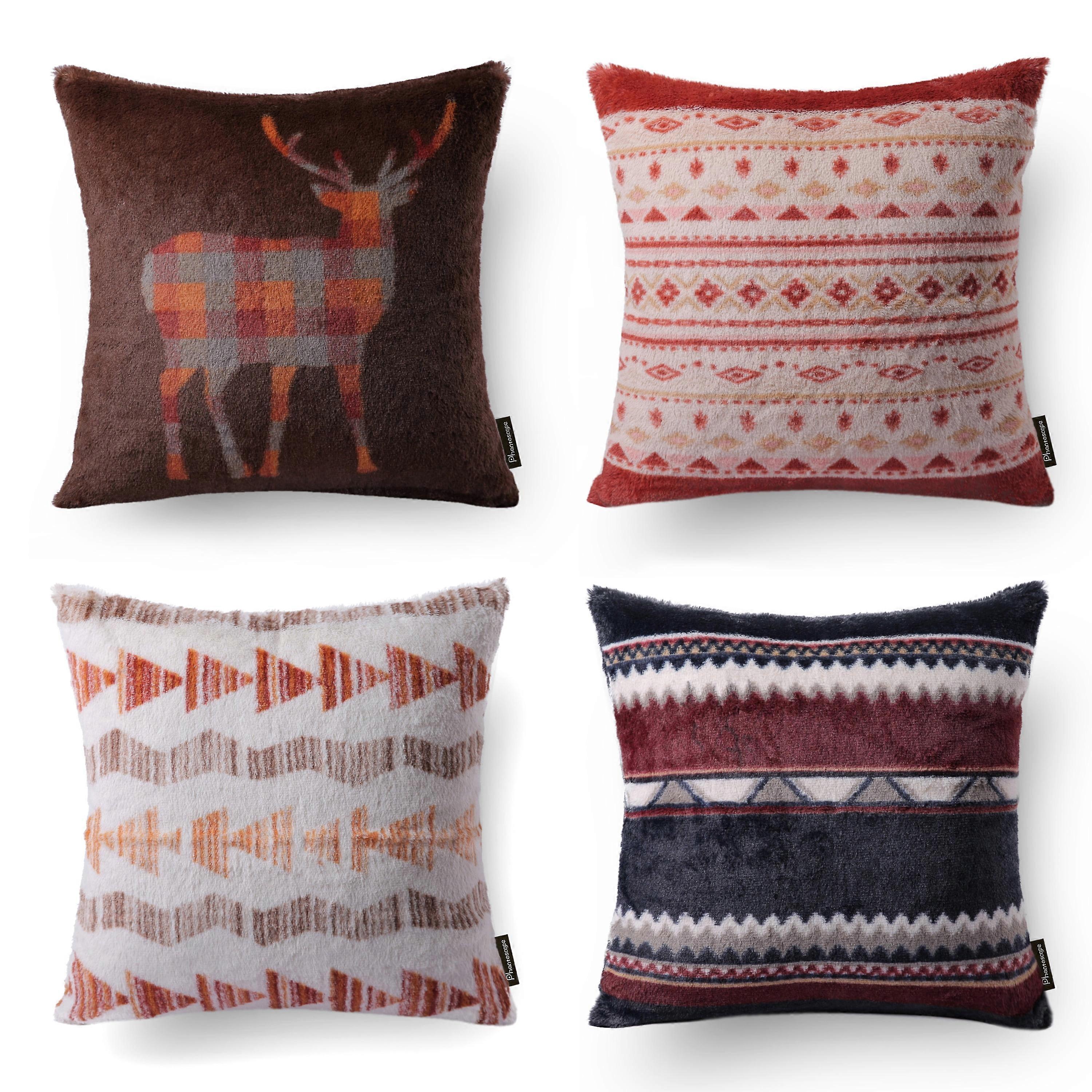 Phantoscope Geometric Series B Faux Fur Vintage Indian Decorative Throw Pillow for Couch, 18" x 18", 4 Pack