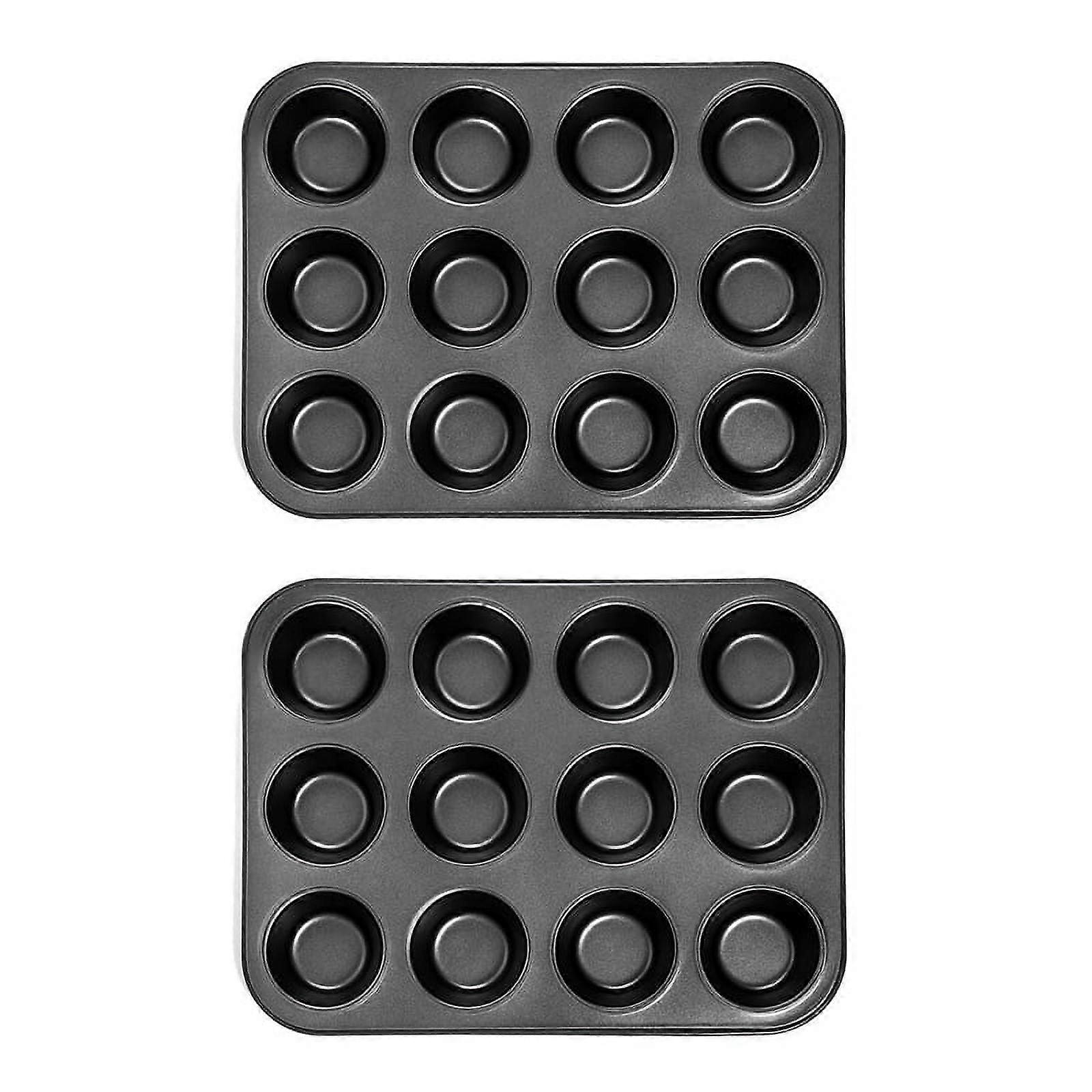 2X Heavy Duty Carbon Steel Cupcake Baking Tray,12 Mini Cup Cupcake Shaped Cake Pan,Nonstick Cupcake Baking Tray
