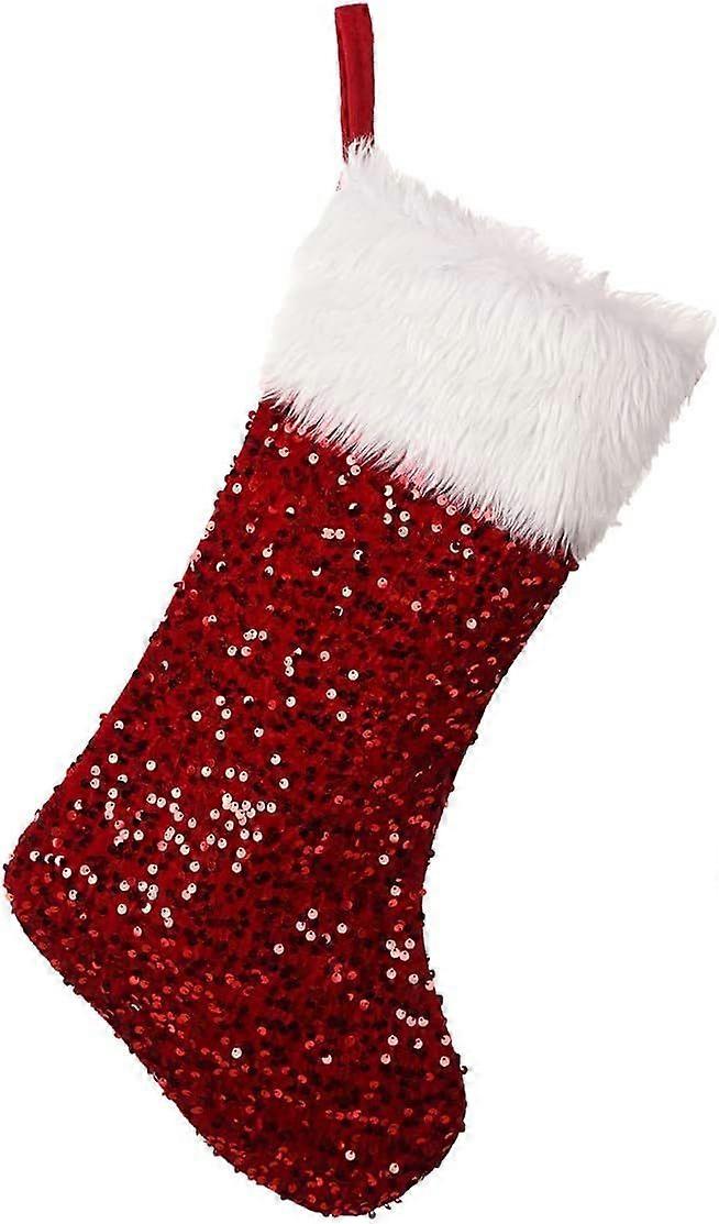 Christmas Socks Sequin Stockings: Customized Red White Silver Family Decor Hanging Ornament for Fireplace Xmas Season Elk Glowing Sequin Santa Snowfla