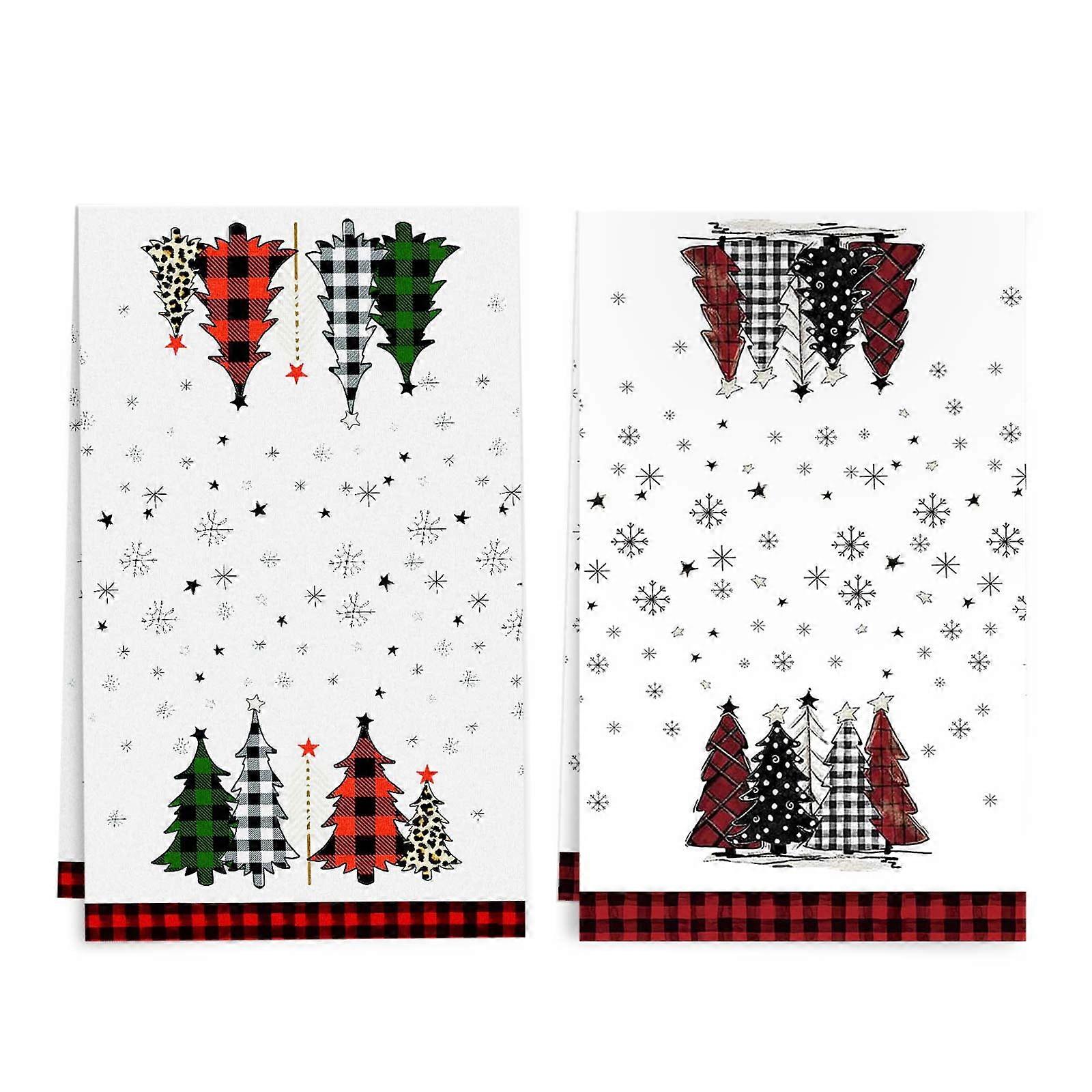 Luckky Christmas Kitchen Towels Set of 2, Merry Christmas Dish Towels with Christmas Tree & Snowflakes, "Let It Snow" Decor, 18x26 Inches