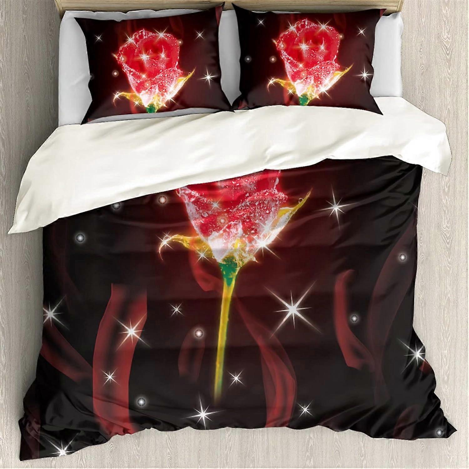 Duvet Red Rose Cover 2 Pillowcases Bedding Set Polyester Bedclothes Child Kids Bed