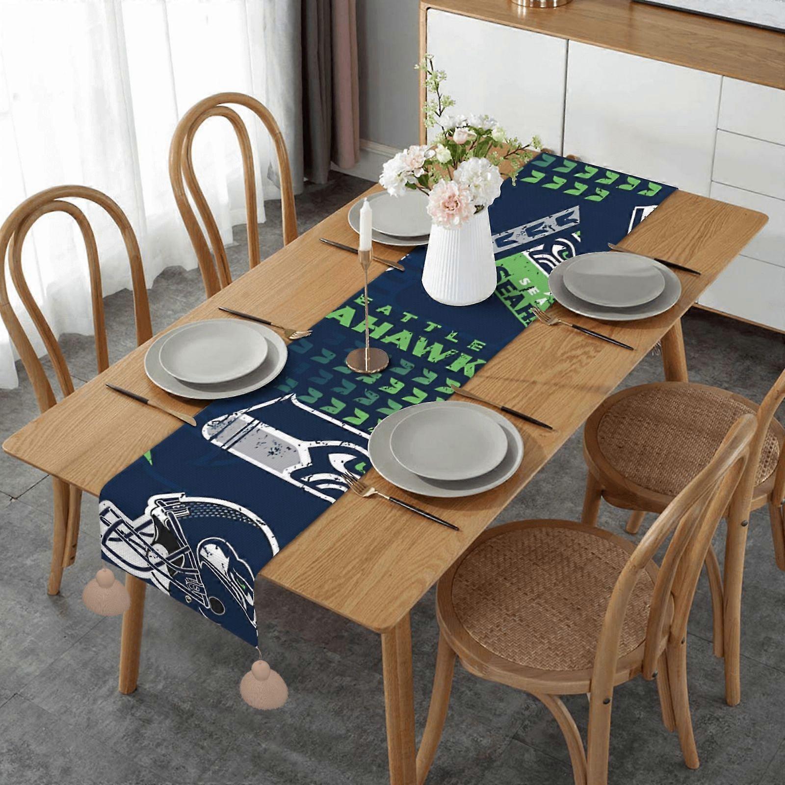 Seahawks Christmas Table Decor with Tassels, Compatible with Xmas Holiday Kitchen Dining Decoration for Indoor Outdoor Home Party