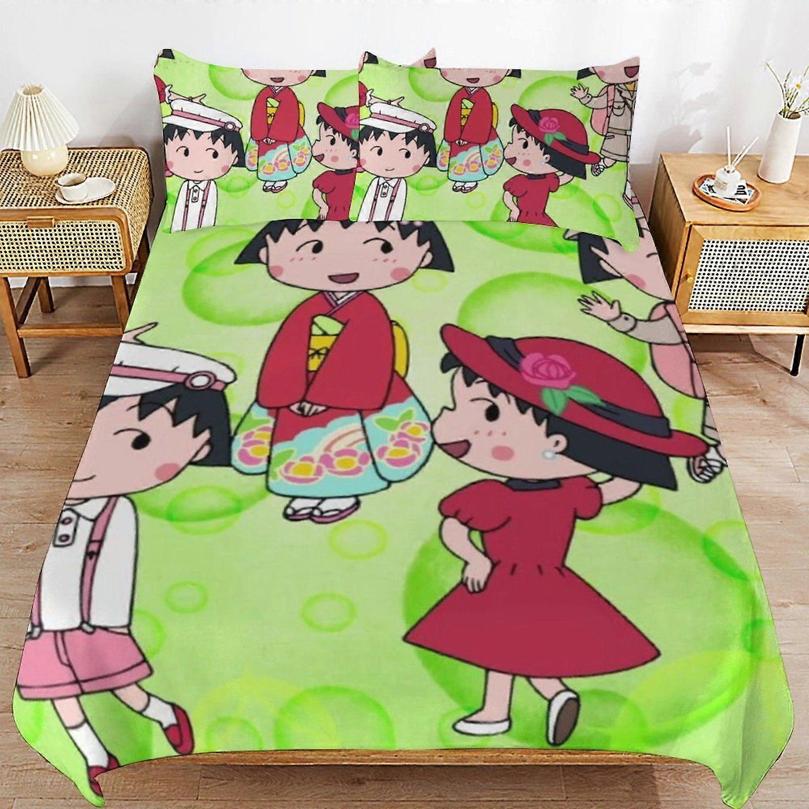 s476 Chibi Maruko-chan Soft Sleep Safe Threaded Build Machine Ready Closure Duvet Cover Sets for Bedroom v476