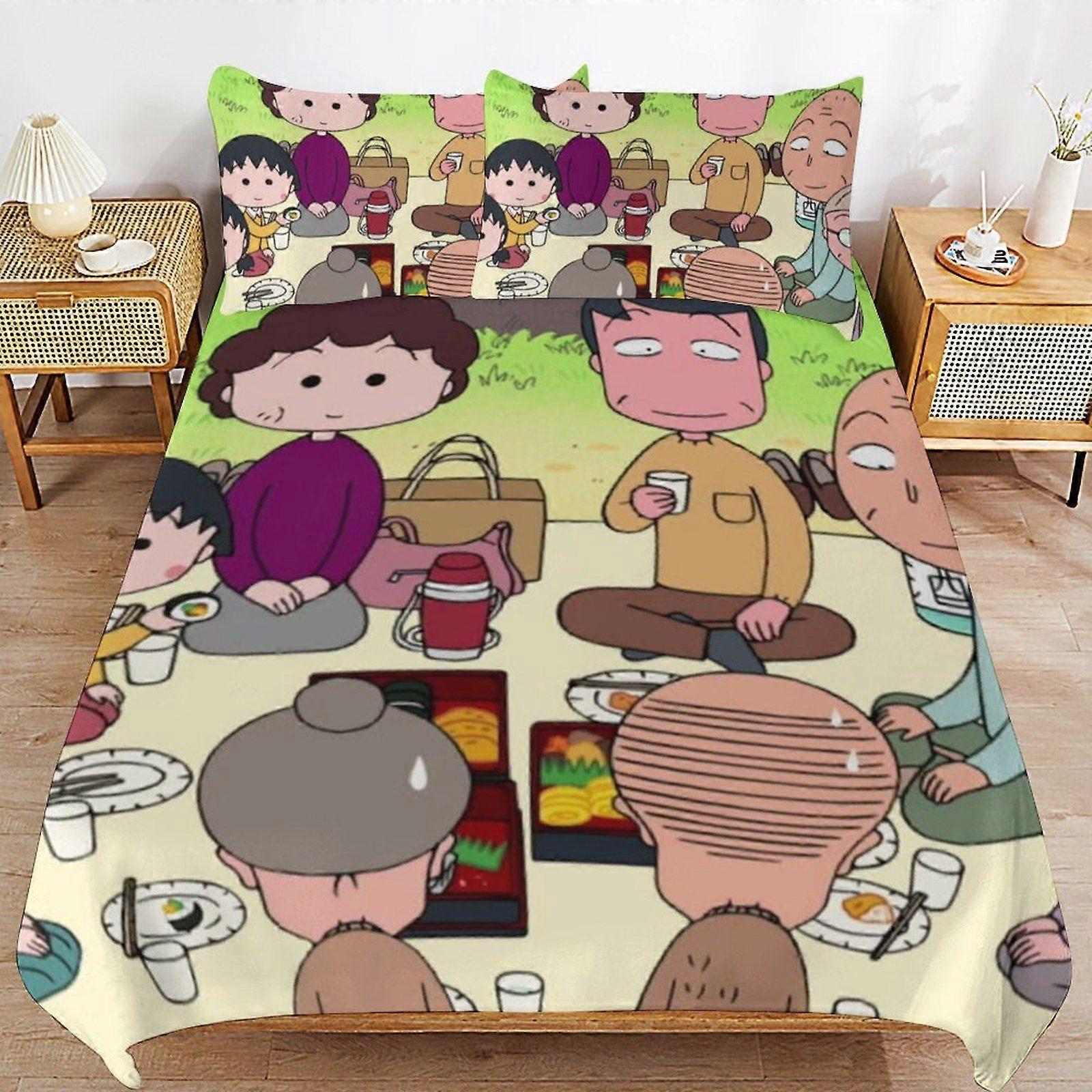 s373 Chibi Maruko-chan Breathable Soft Fabric Smooth Zipper Construction Cozy Fit Duvet Cover Sets for Relaxation v373