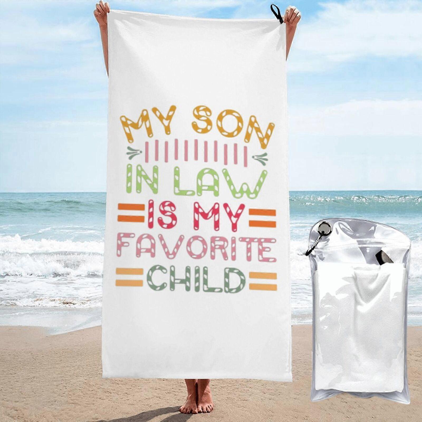 My Son In Law Is My Favorite Child Funny Gift Beach Towel - Soft Microfiber Bath Blanket for Swimming, Yoga, Parade, Women Men