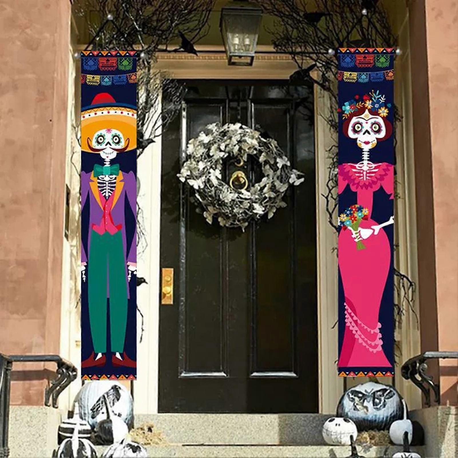 SUSUchens Halloween Couplets Spooky Front Porch Ghost Banner Decoration Outdoor Halloween Couplet Decor for Courtyard Party Style A