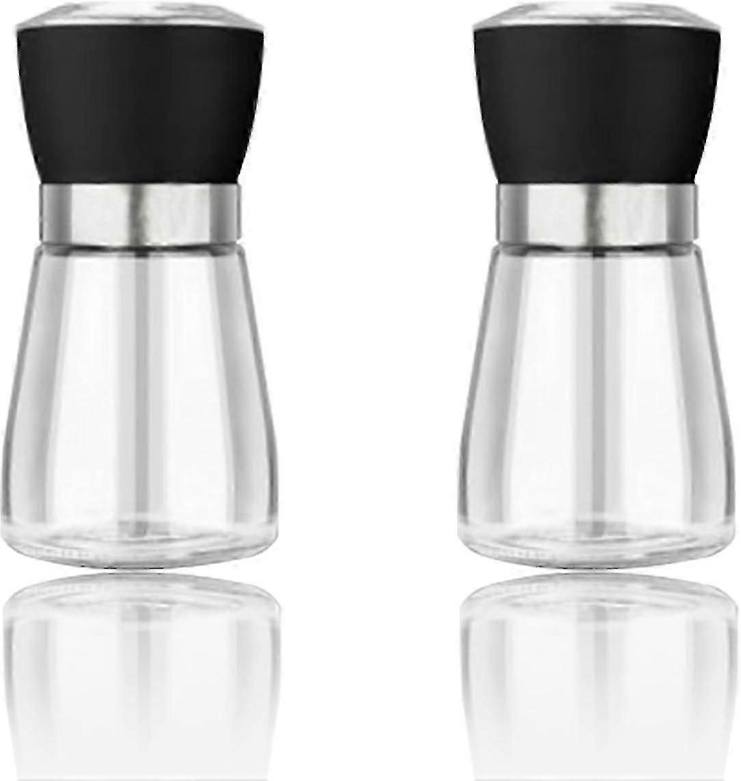 Refillable Salt And Pepper Grinder, 2 Pcs Adjustable Manual Pepper Mill, Pepper Grinder With Plastic Lid, For Pepper, Salt
