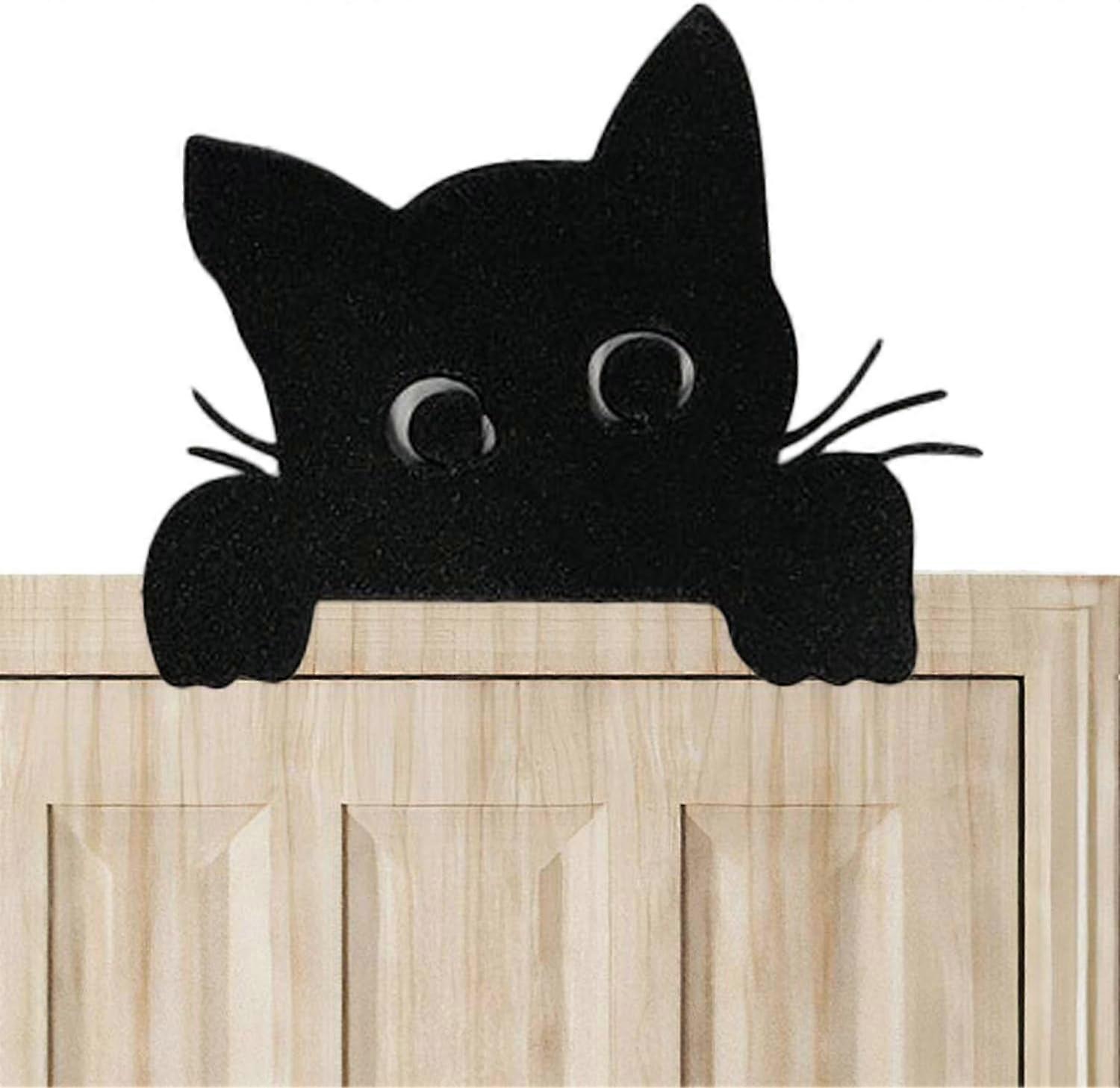 Metal Adorable Cat Door Topper, Compatible with Cat Door Frame Corner Decor, Kitty Corner Ornament for Home Door & Window (B, Iron)