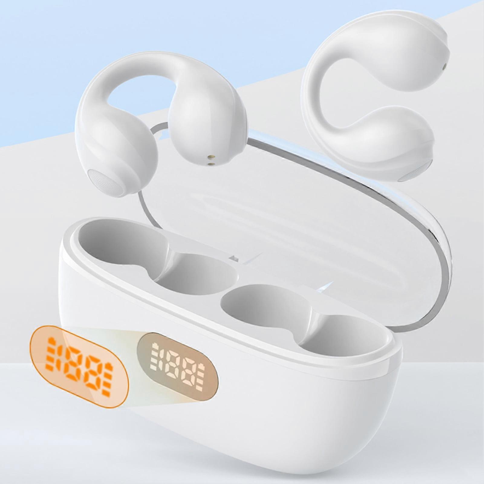 Description: Introducing our latest earphones, designed to enhance your audio experience like never before. With dual noise reduction and sponge elimination technology, these earphones automatically recognize human voices and noise, resulting in improved clarity during calls that feel like face to face conversations. Equipped with a Bluetooth-compatible 5.3 chip, these earphones offer lower power consumption, lower latency, and a more stable transmission for clearer calls. The innovative ear clip design ensures a healthy and comfortable fit without the need to insert the ear or choose the size of the earpiece. Featuring an LED screen, the charging compartment and headphone battery level are visible at a glance, allowing you to easily control them anytime and anywhere. When fully charged, these earphones provide up to 5 hours of usage. And with the included charging case, you can enjoy a continuous battery life of up to 24 hours, ensuring you can play music from morning till night. Not only are these earphones technologically advanced, but they are also built to withstand daily wear and tear. With an IP54 dustproof and waterproof rating, you don't have to worry about using them in the rain or during exercise. The sound quality is exceptional, allowing you to fully immerse yourself in the beauty of music. Item Name: Earphone Material: ABS Bluetooth-compatible Version: V5.3 Effective Distance: 10 Meters Sound Pressure Level: 94 3dBsP (A) Bluetooth-compatible Protocol: A2DP, AVRCP, HFP Frequency Response Range: 20Ηz-20ΚΗz Work Time: about 5h (Headphones) 24h (Charging Box) Headphones: Direct Current 5V 200mA Charging Box: DV 5V 1A Wearing Style: Ear-hanging Playback Control: Touch Noise Reduction: Intelligent Noise Reduction Features: LED Power Display, Low Latency, HiFi Sound Size Details: L: 6cm/2.36", W: 3cm/1.18", H: 2cm/0.79" (Approx.) Notes: Due to the light and screen setting difference, the item's color may be slightly different from the pictures. Please allow slight dimension difference due to different manual measurement. Package Includes: 1 Pair of Headphones 1 x Charging Compartment 1 x Charging Cable 1 x User Manual With dual noise reduction and sponge elimination technology, these earphones automatically recognize human voices and noise, resulting in improved clarity during calls that feel like face to face conversations. Equipped with a Bluetooth-compatible 5.3 chip, these earphones offer lower power consumption, lower latency, and a more stable transmission for clearer calls. The innovative ear clip design ensures a healthy and comfortable fit without the need to insert the ear or choose the size of the earpiece. Featuring an LED screen, the charging compartment and headphone battery level are visible at a glance, allowing you to easily control them anytime and anywhere. IP54 dustproof and waterproof rating for worry-free use in daily activities and exercise.