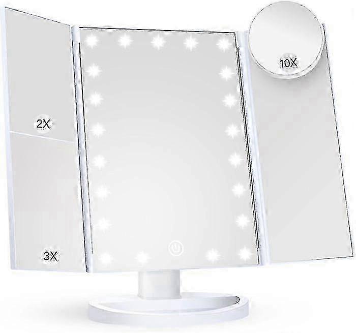 Makeup mirror, makeup mirror with light, tri-fold makeup mirror, portable LED makeup mirror, white 0403