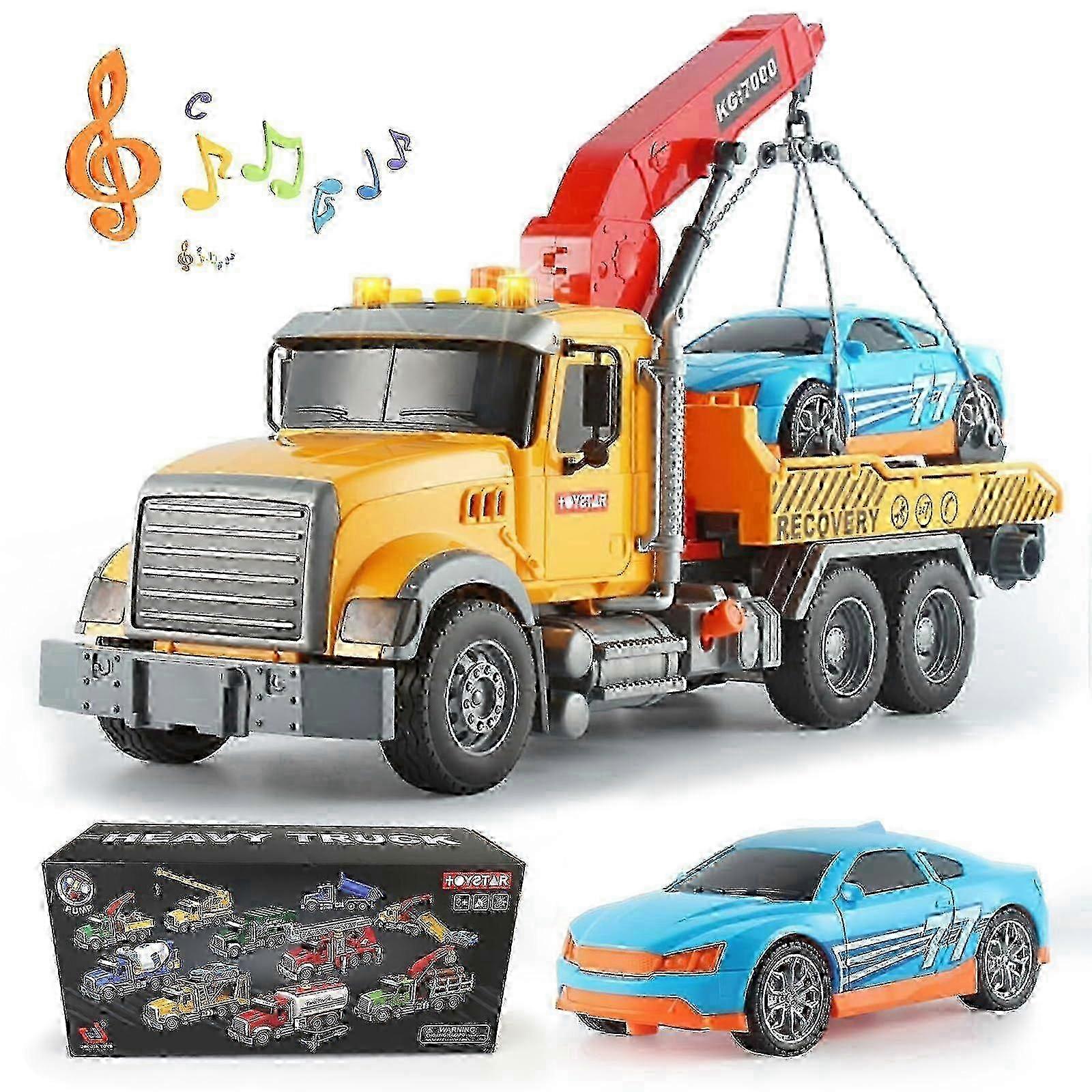1.15' Large Rescue Tow Truck: Standing at 15 inches, this large tow truck toy a realistic and immersive experience. Comes complete with a race car, adding another level of fun and versatility to play scenarios. Eyecatching and detailed design makes this tow truck and race car set visually appealing and engaging for 2.Interactive Sounds and Lights: Equipped with exciting sounds and lights that enhance the rescue mission experience, capturing ' attention and imagination. 3.Realistic Play Features: The tow truck is packed with interactive features, including a detachable rescue hanger and an extendable tow arm, allowing to perform realistic towing operations. 4.FrictionPowered Function: No batteries required! Push the tow truck forward and watch it move on its own, providing hours of active fun. Note: Due to the light and screen setting difference, the item's color may be slightly different from the pictures. Please allow slight dimension difference due to different manual measurement.