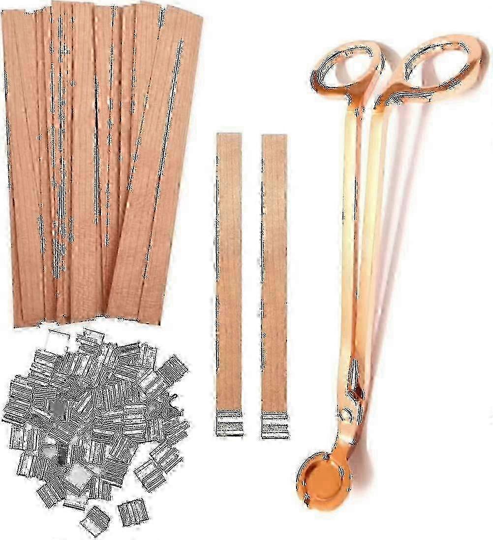 100pcs Wood Wicks For Candles, Wood Candle Wicks Natural Wooden Candle Wicks With Candle Wick Trimmer Smokeless Crackling Wooden C