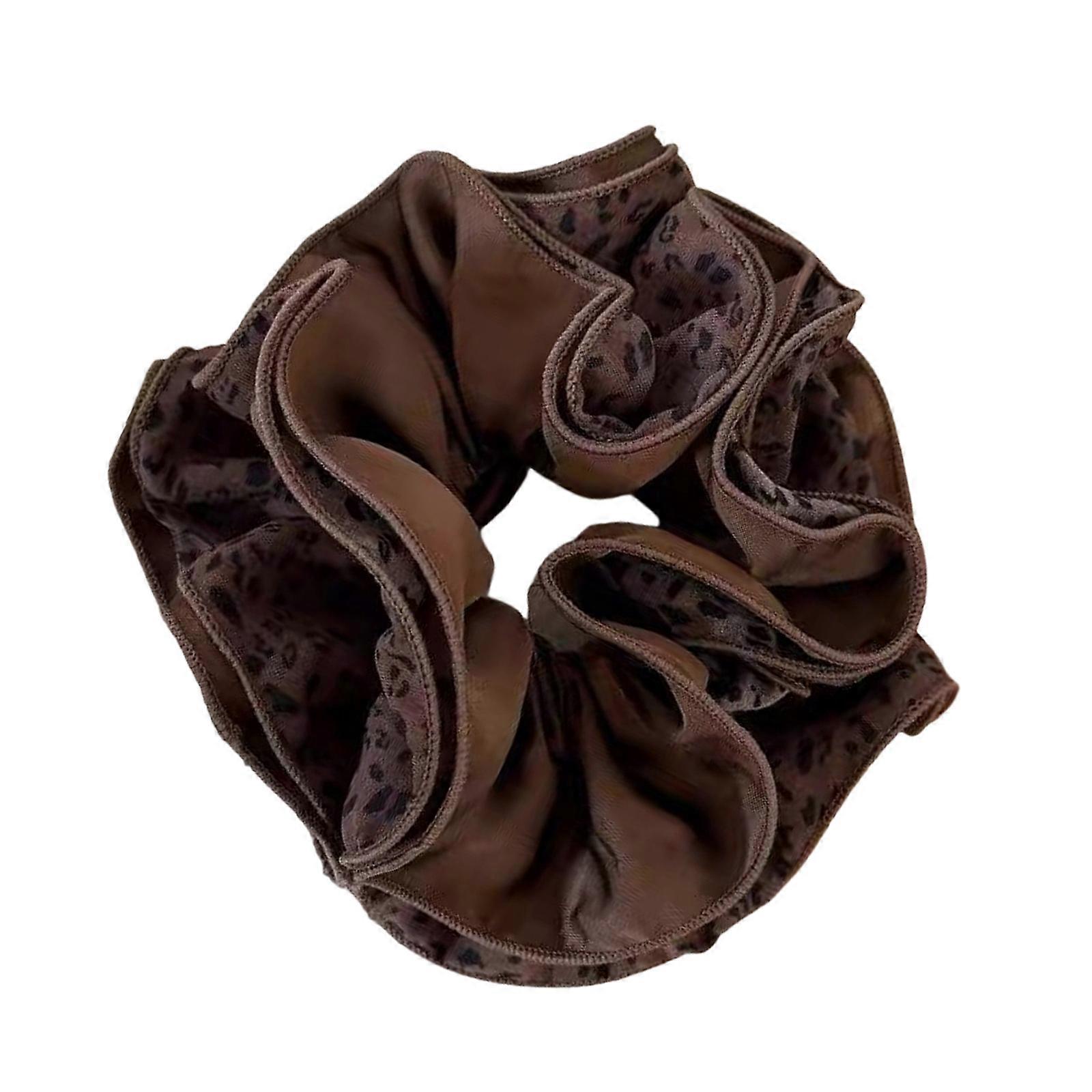 Lightweight Cloth Fabric Scrunchies Double Layer Coffee Hair Tie Four Stitching Edge Design Hair Rope for Sports Casual Deep coffee