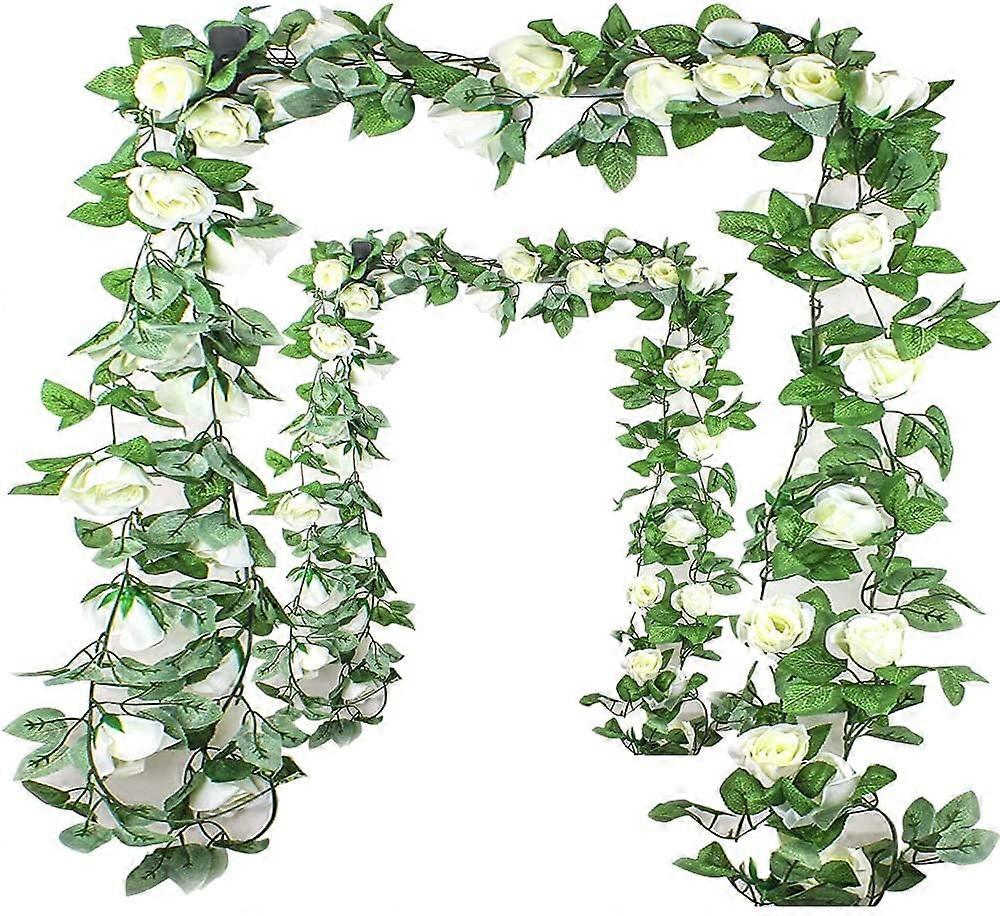 2 Pack 15ft Artificial Rose Vine with Green Leaves, Fake Silk Garland Ivy - Compatible with Home, Hotel, Office, Wedding, Party, Garden Décor
