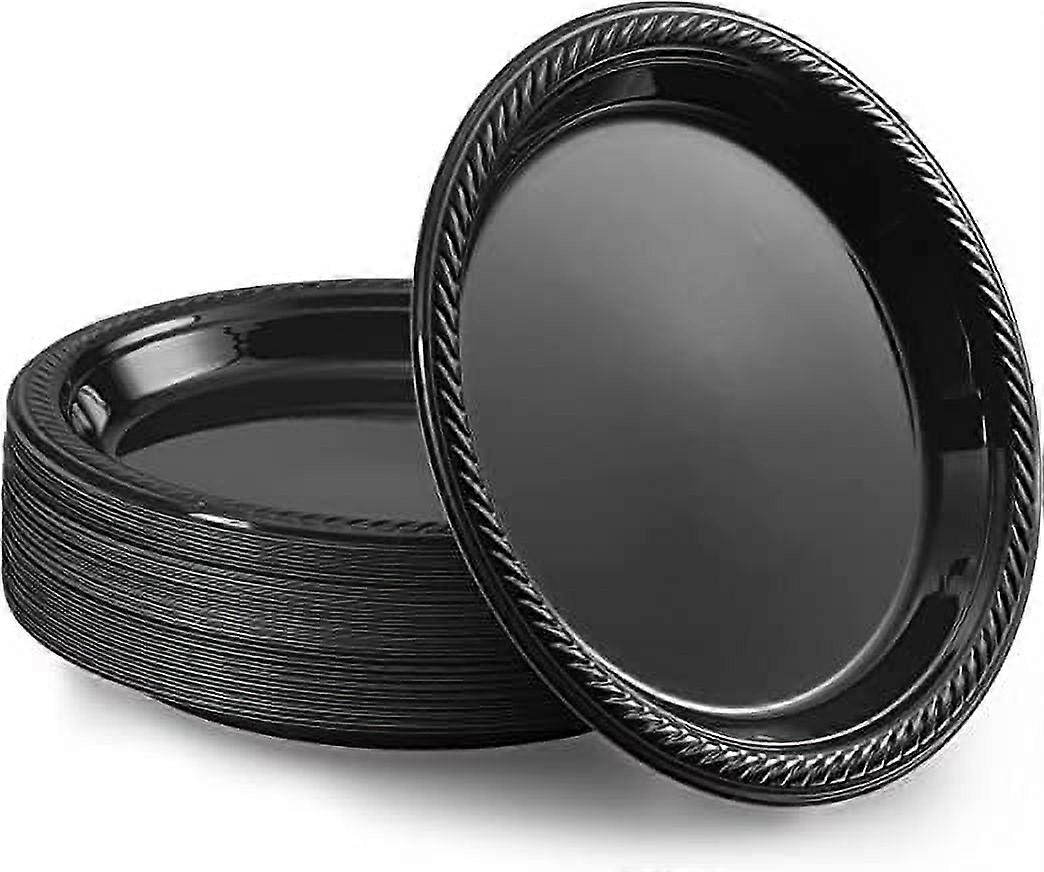 VeZee's Cuisine 9 Inches Disposable Black Plastic plates Good to use in Microwave, Best for home Parties, Restaurant, & Deli: 400 Count