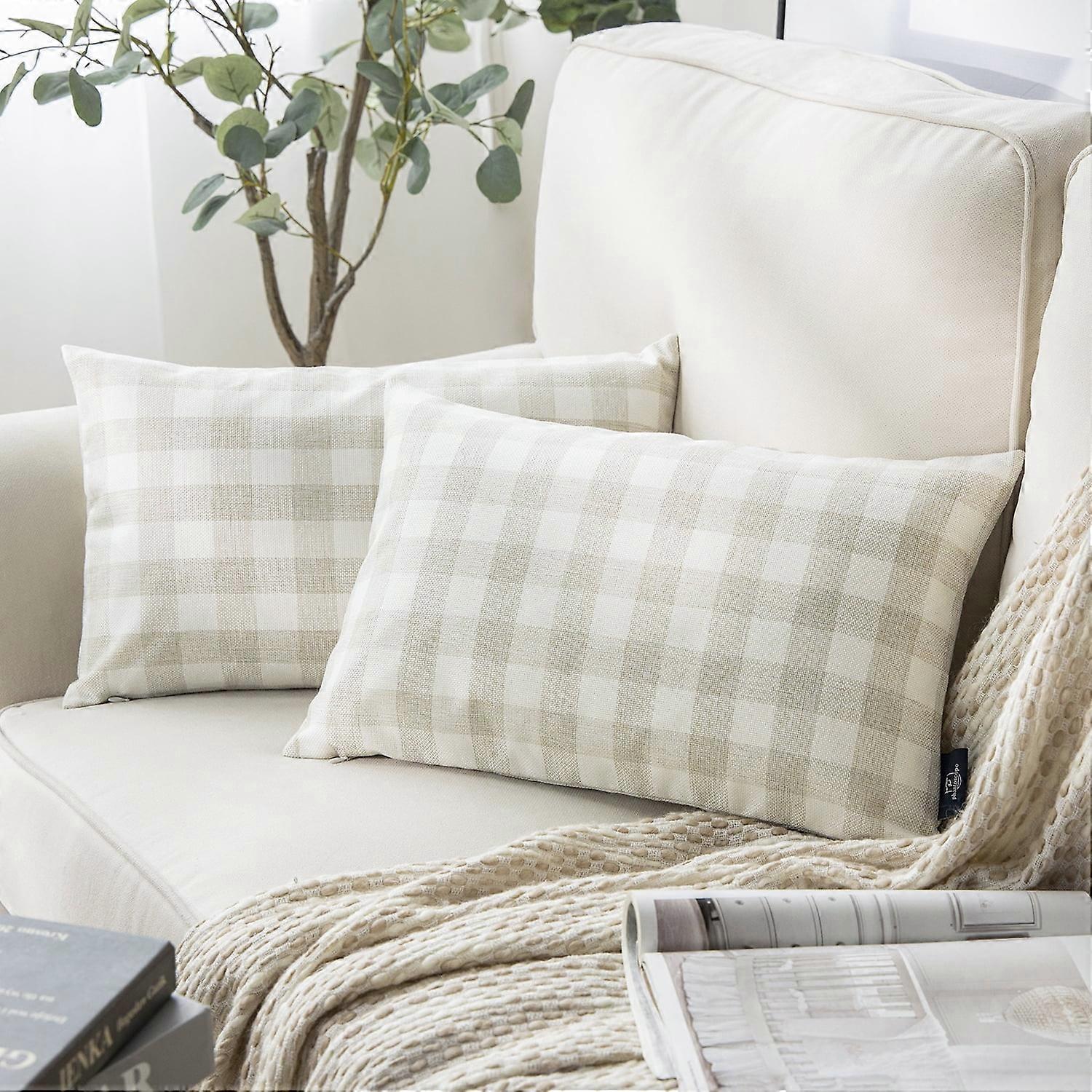 Checkers Series Square Decorative Throw Pillow Covers, Classic Retro Plaids, 12"x20", Off White, Set of 2