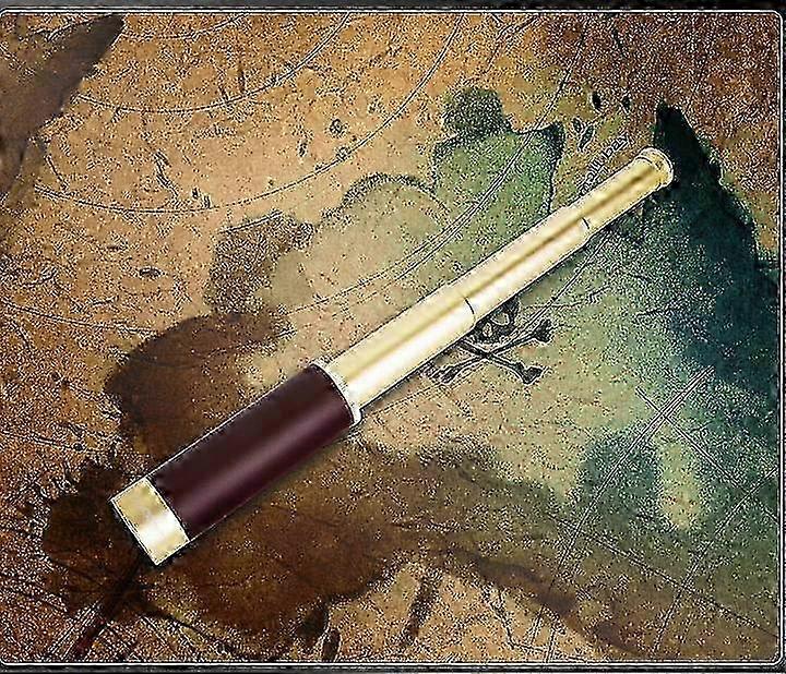 Fine Quality and Exquisite - The spyglass is classically designed with durable aluminum alloy plating gold and handle part is covered with premium leather. It also package with a leatherette case 25x30 High Power Magnification-It is not just a toyThe hand-held Collapsible Captains Brass Spyglass, with 25x magnification can reach a field of view of 270ft at 1000yd, bringing a sharper and broader view to you. Compact and Focusable-The Spyglass is telescopic,you can contract the lenght to 13.5 cm, and only weight 213g.It is so lightweight and compact that you can take it with you anywhere. Stretch the spyglass body slightly to focuse,you can find the beautiful scenes easily. A Cool Spyglass for Gift -Perfect as a gift for kids to realize their captains dream and explore the world, and a great addition to your maritime or Captain or Pirate collection. Note: Due to the light and screen setting difference, the item's color may be slightly different from the pictures. Please allow slight dimension difference due to different manual measurement.