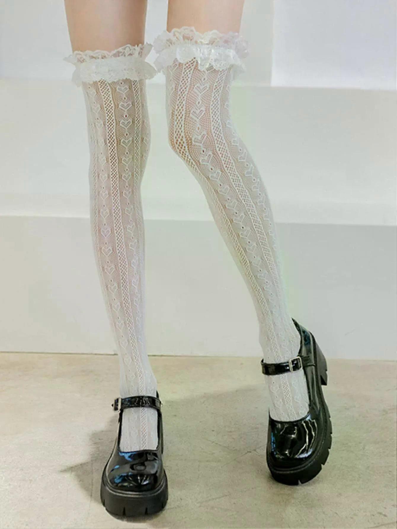 1 pair of new Lolita stockings lace stockings Lolita knee high JK girls thigh stockings Cos knee high stockings