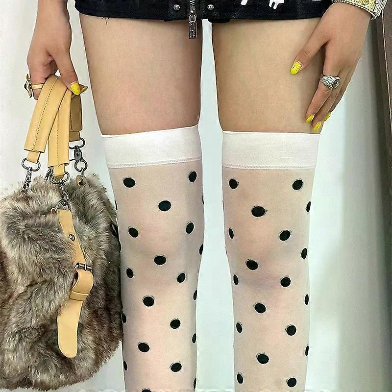 Y2K Polka Dot Susperder Stocking Women 2025 Bow Tie Suspender Wide-banded Velvet Tights Lolita Thin Thigh High Stockings _x000D_ _x000D_