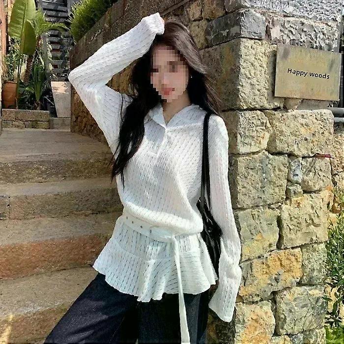 Sweet Cool Spicy Girl Long Sleeve Hoodie T-Shirt Women s Spring Summer Loose Hollow out Slimming Midi Length Top