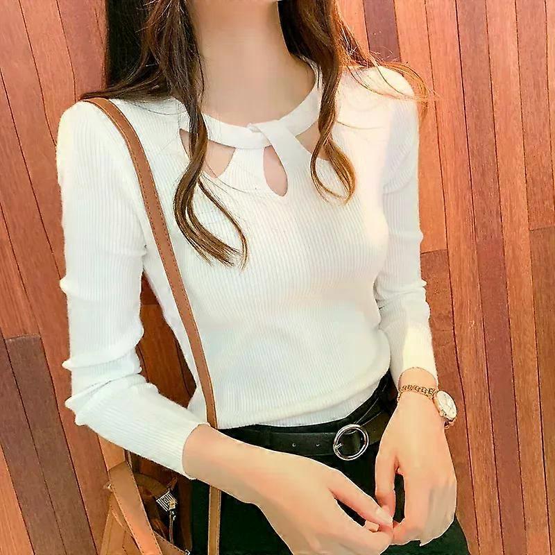 Women s O-neck Stretch Sexy Pullover Lady Autumn Winter Hollow Solid Color Sweater Slim Bottoming Shirt Jumper Sueter 16639