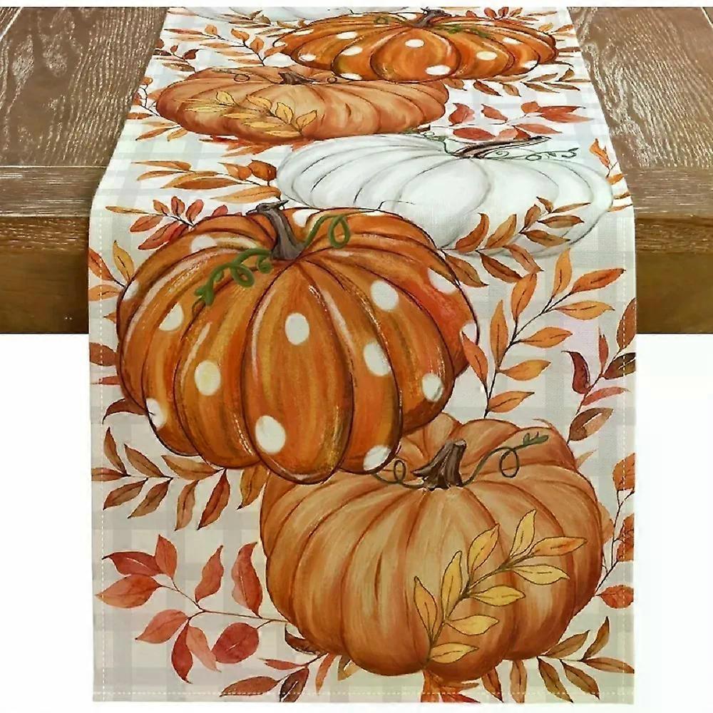 1 Piece of Autumn Polka Dot Pumpkin Table Runner Painted Orange Polka Dot Pumpkin Autumn Leaf Suitable for Restaurant Home Picnic Harvest Party Market