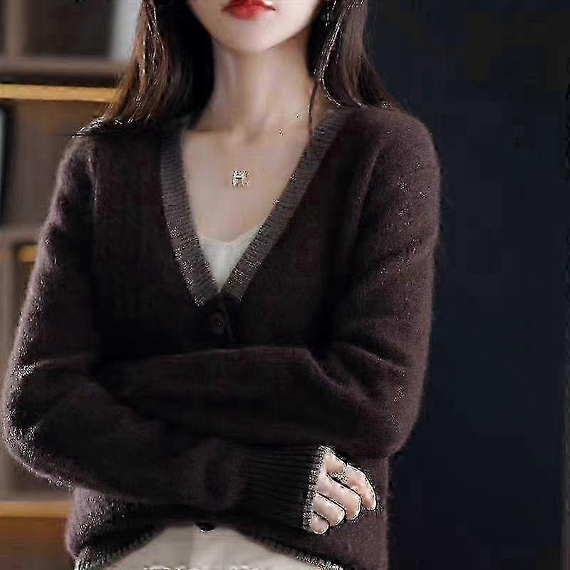 z Women Cardigan Sweater Spring New Loose Long Sleeve Woolen Knitted Cardigan Patchwork V-Neck Sweater Cardigan Female Coat Tops