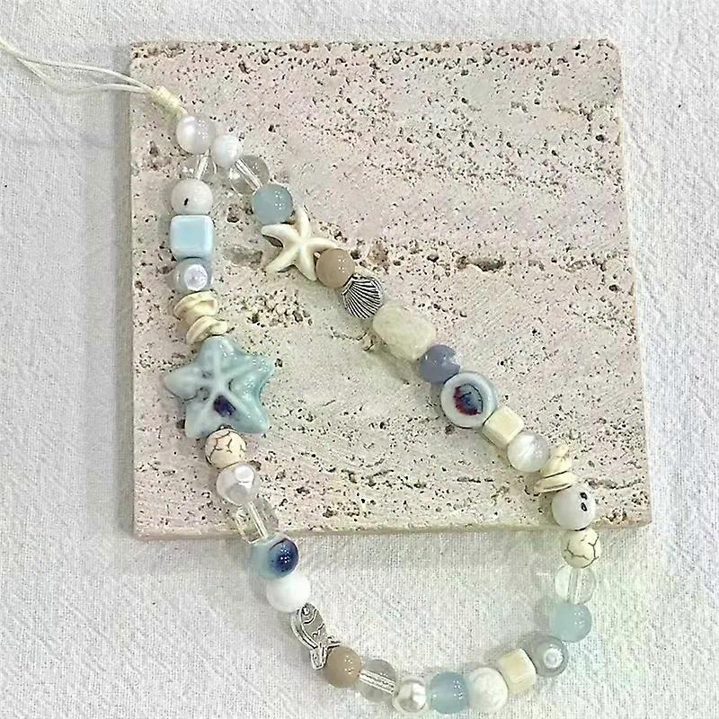 Korean Cartoon Cute 3D Blue Starfish Beaded Phone Chain Charm Lanyard For iPhone Samsung Universal Accessories Jewelry Pendant