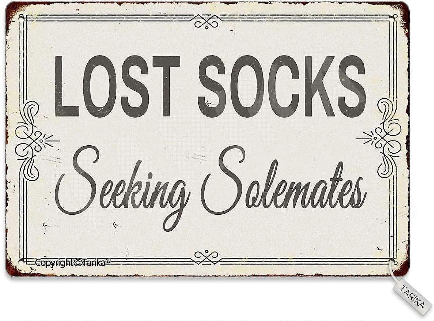 Lost Socks Seeking Solemates 20x30cm Metal Retro Wall Sign for Home, Kitchen, Bathroom, Farm, Garden, Garage Decor