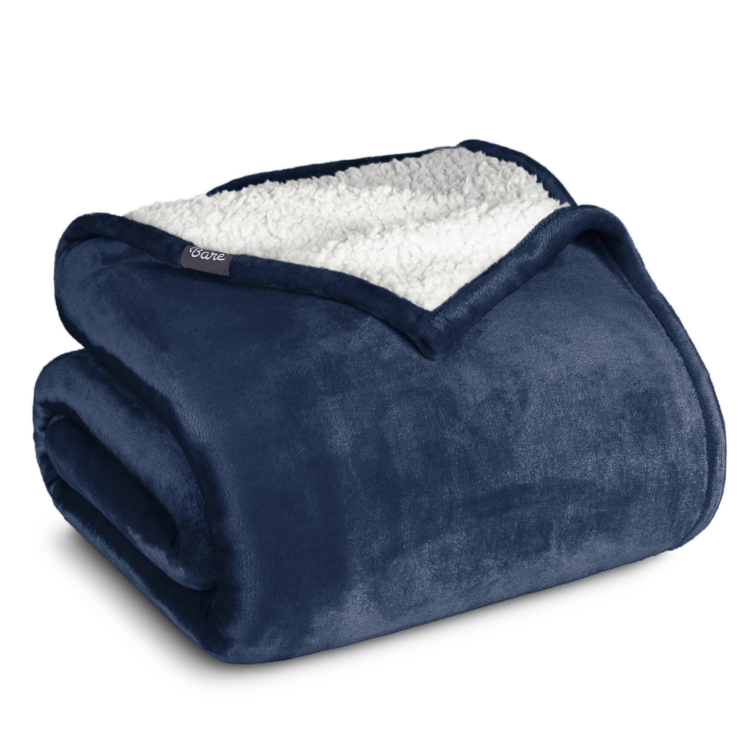 Bare Home Plush Sherpa Bed Blanket - Fluffy & Soft - Reversible - Lightweight - King, Dark Blue