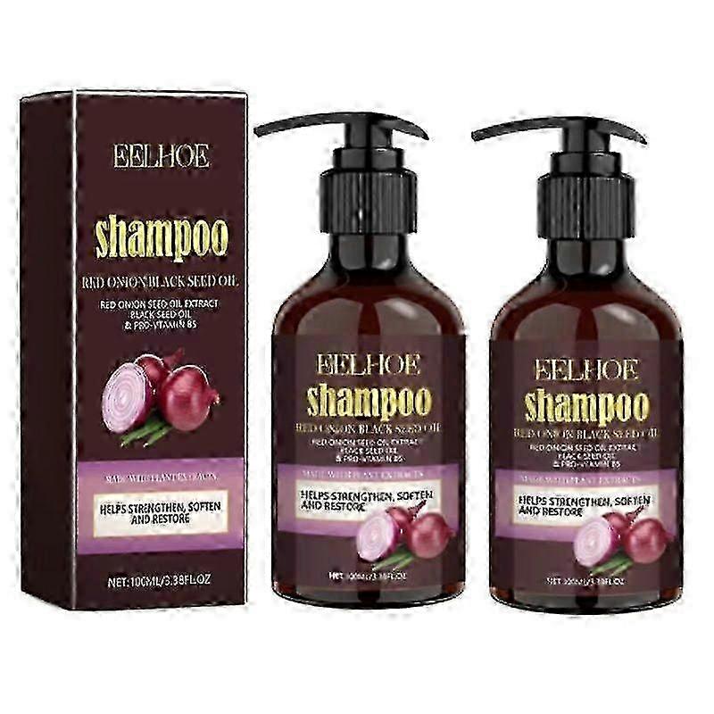 2pcs Red Onion Black Seed Oil Shampoo, Cleansing Scalp Refreshing Nourishing Repairing Damaged Hair Care