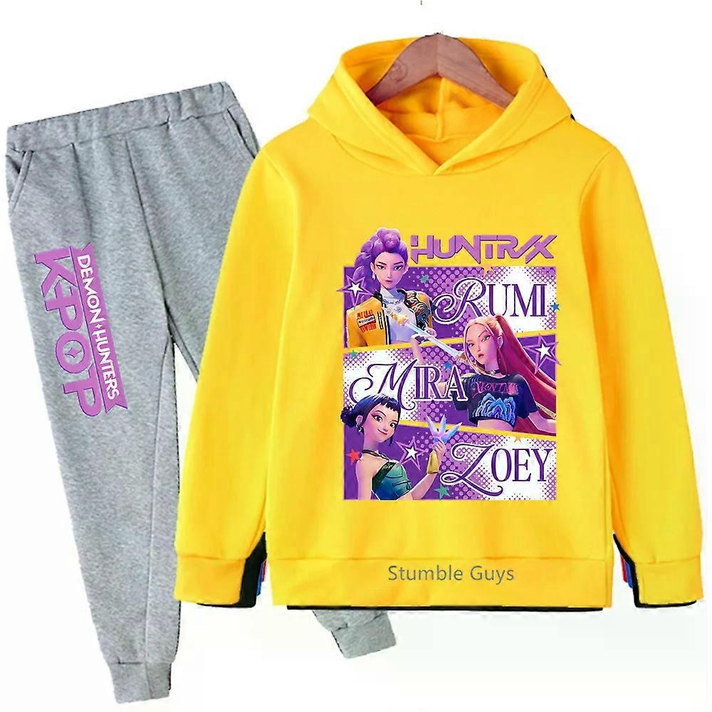 Kids Kpop Demon Hunters Hoodie Set Boys Girls Sportswear 3-14Y Autumn Casual Clothes