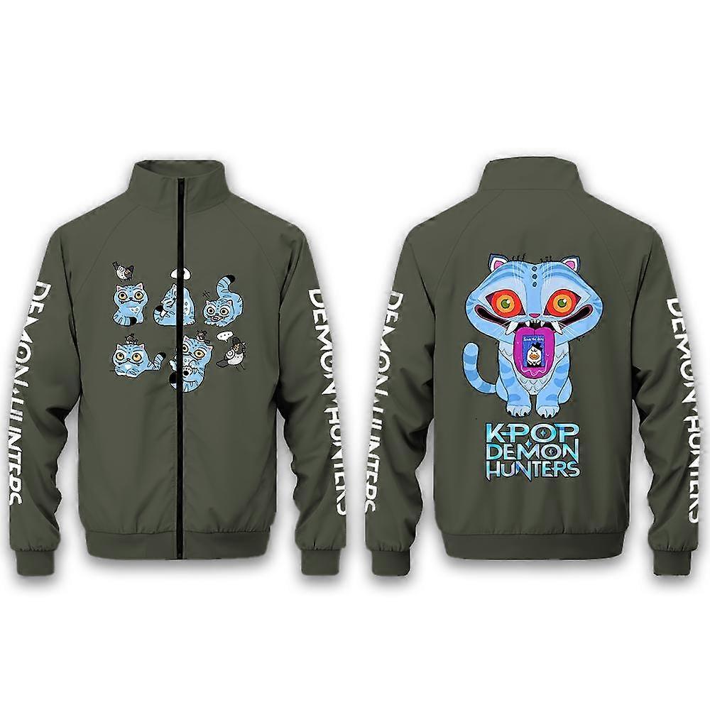 Popular Kpop Demon Hunter Pattern Sweatshirt Autumn And Winter Street Fashion Cardigan Unisex Y2K Casual Stand Collar Jacket