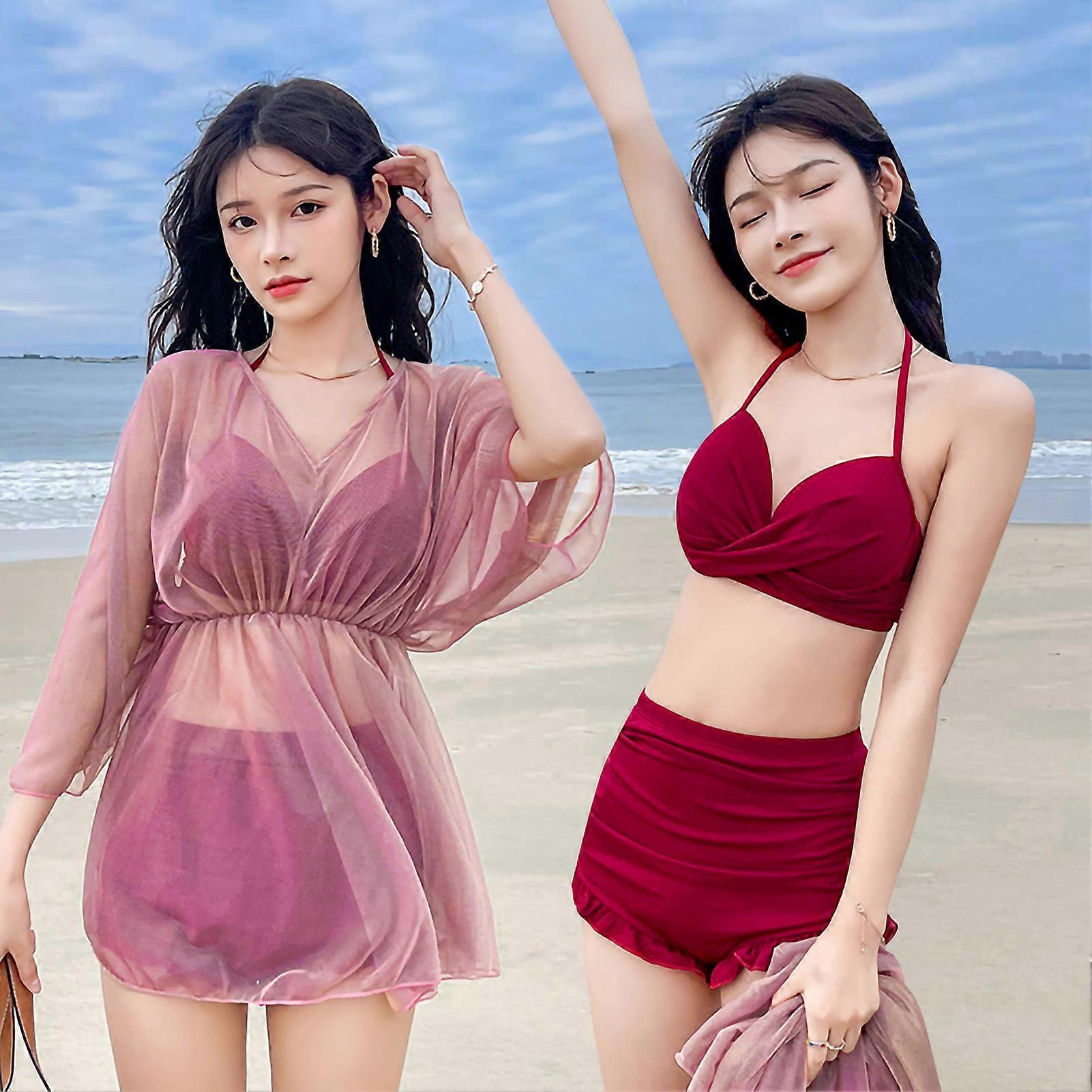 Three Piece Women Swimsuit with Conservative Cover Bikini Swimwear Female Bathing Suit for Summer Beach