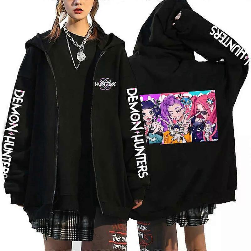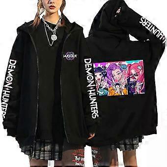 Hot Kpop Demon Hunters Mira Rumi Zoey Print Hoodies Women Men Black Zipper Hoodie Harajuku Sweatshirt Hip Hop Streetwear Jacket